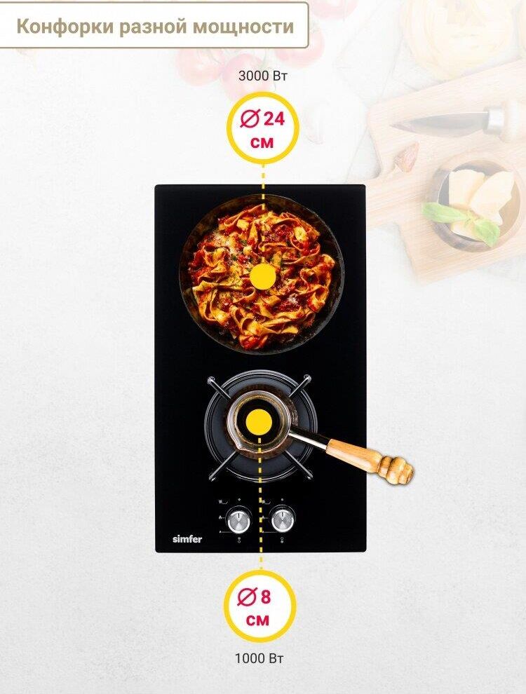Газовая варочная панель Simfer H30N20S470 - модель, которая благодаря своим компактным размерам органично впишется в интерьер вашей кухни и сделает ежедневный процесс приготовления еды комфортным. В качестве материала для изготовления варочной поверхности использовалось закаленное стекло, которое в разы упрощает утомительный процесс ухода за ней и делает процесс очистки лёгким и удобным. На ней располагаются две конфорки - разные по диаметру и мощности пламени в них.