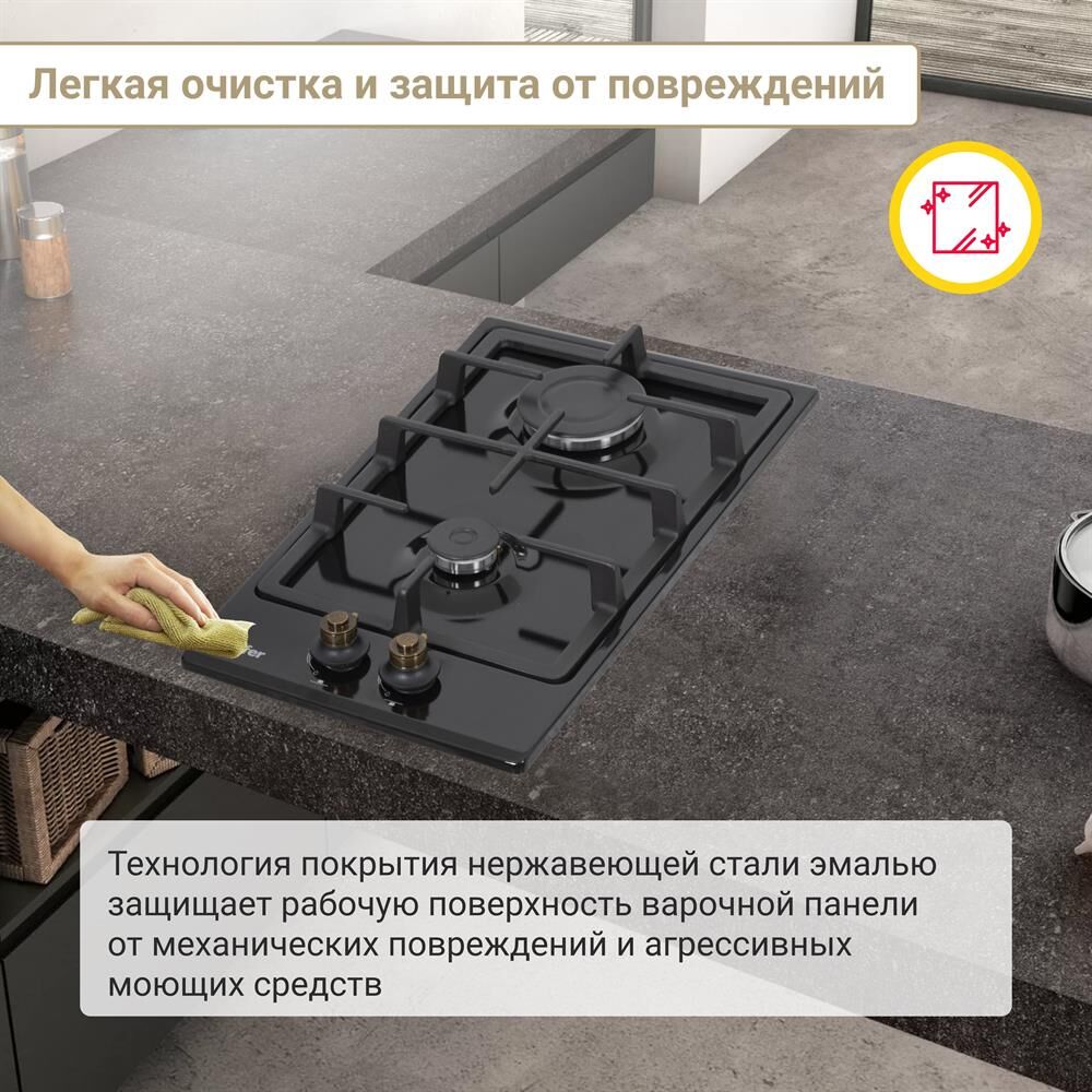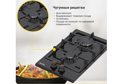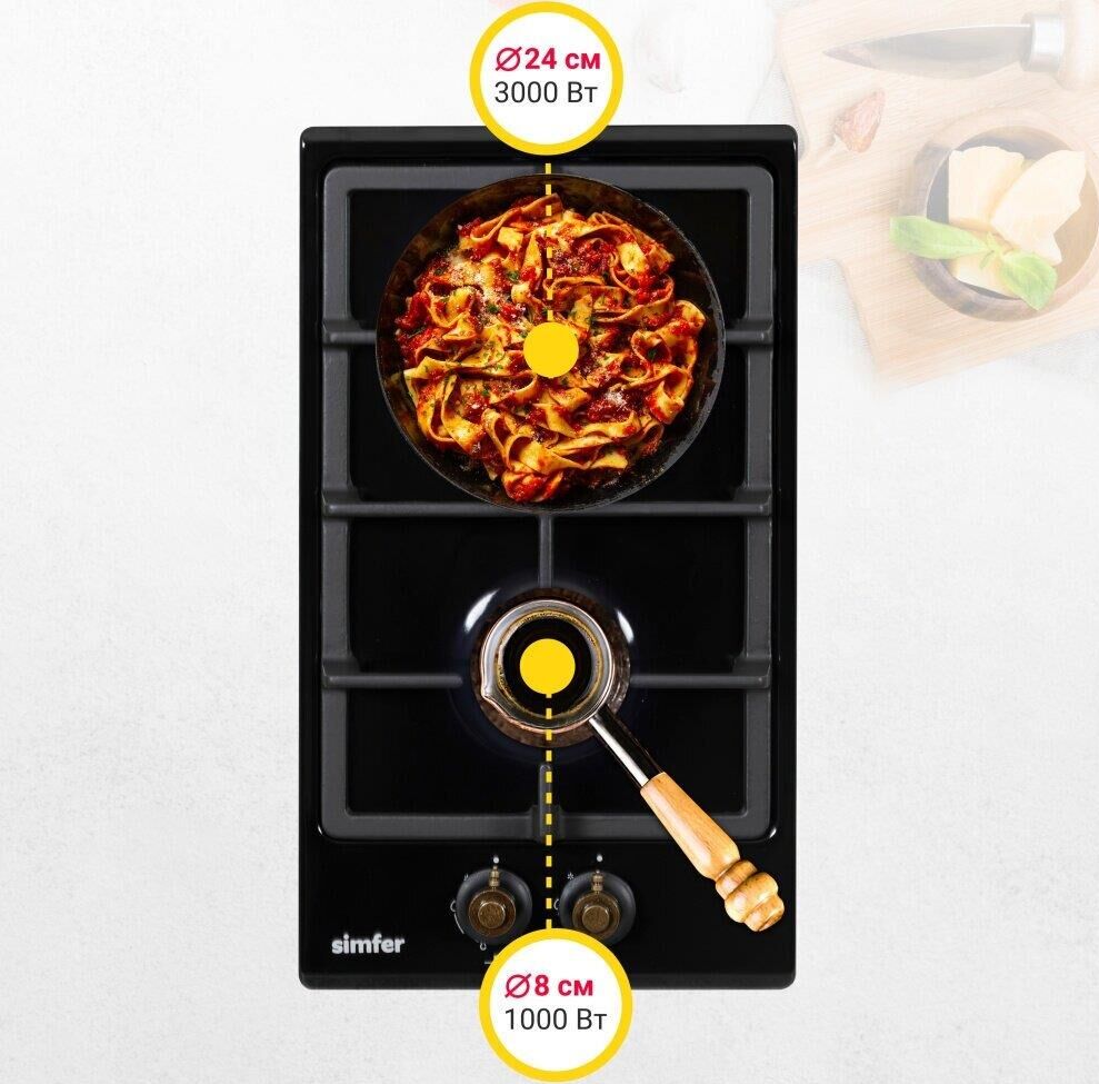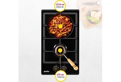 Газовая варочная панель Simfer H30V20L516 - модель, которая благодаря своим компактным размерам органично впишется в интерьер вашей кухни и сделает ежедневный процесс приготовления еды комфортным. Рабочая поверхность выполнена из эмалированной стали – прочного и долговечного материала. На ней располагаются две конфорки - разные по диаметру и мощности пламени в них. А значит вы сможете выбрать оптимальную конфорку для приготовления разнообразных блюд.