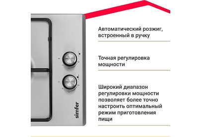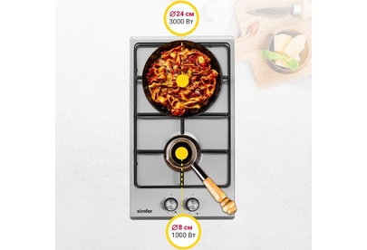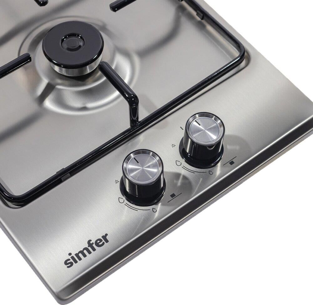 Газовая варочная панель Simfer H30V20M411 - модель, которая благодаря своим компактным размерам органично впишется в интерьер вашей кухни и сделает ежедневный процесс приготовления еды комфортным. Рабочая поверхность выполнена из нержавеющей стали – прочного и долговечного материала. На ней располагаются две конфорки - разные по диаметру и мощности пламени в них. А значит вы сможете выбрать оптимальную конфорку для приготовления разнообразных блюд.