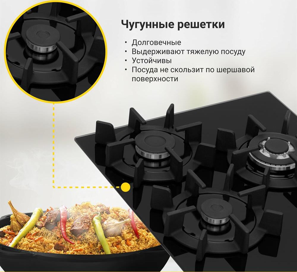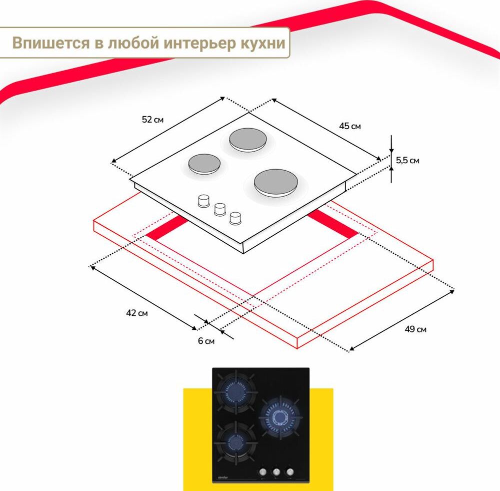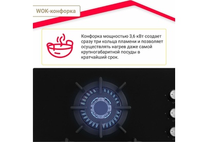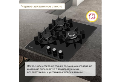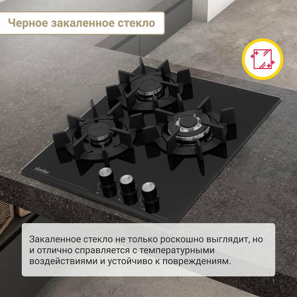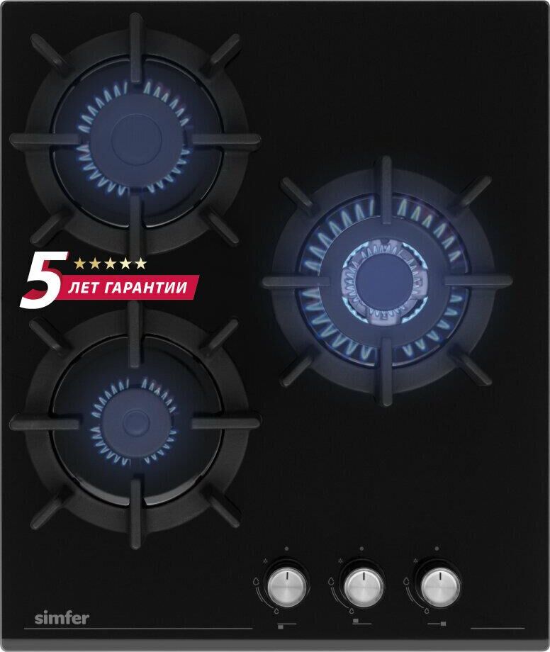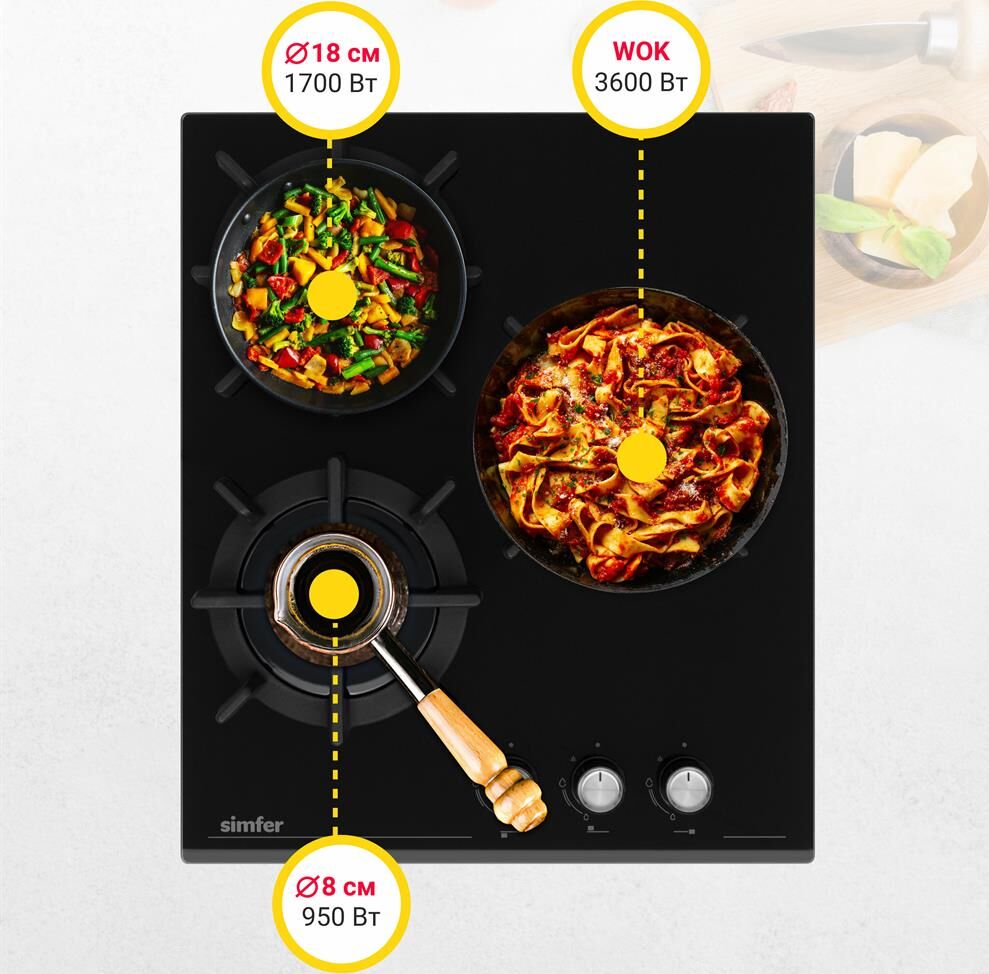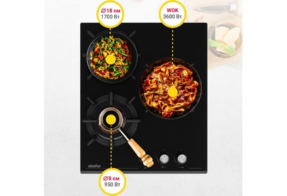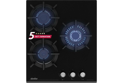 Газовая варочная панель Simfer H45N35B571 - модель, которая благодаря своим компактным размерам органично впишется в интерьер вашей кухни и сделает ежедневный процесс приготовления еды комфортным. Материал рабочей поверхности - жаростойкое закаленное стекло, которое имеет красивый зеркальный вид. На ней располагаются три конфорки - разные по диаметру и мощности пламени в них. Одна из конфорок имеет повышенную мощность до 3600 Вт (WOK-конфорка).