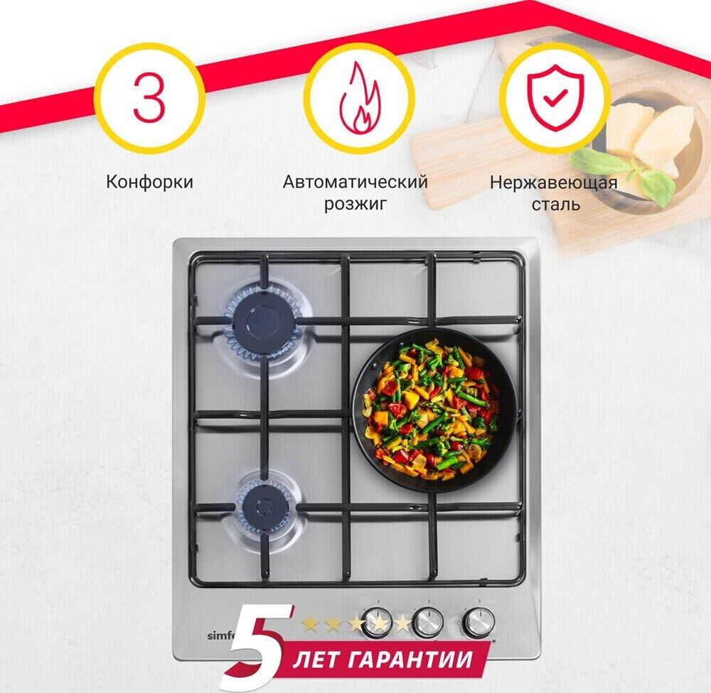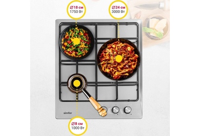 Газовая варочная панель Simfer H45V30M420 - модель, которая благодаря своим компактным размерам органично впишется в интерьер вашей кухни и сделает ежедневный процесс приготовления еды комфортным. Рабочая поверхность выполнена из прочного и долговечного материала. На ней располагаются четыре конфорки - разные по диаметру и мощности пламени в них. А значит вы сможете выбрать оптимальную конфорку для приготовления разнообразных блюд.