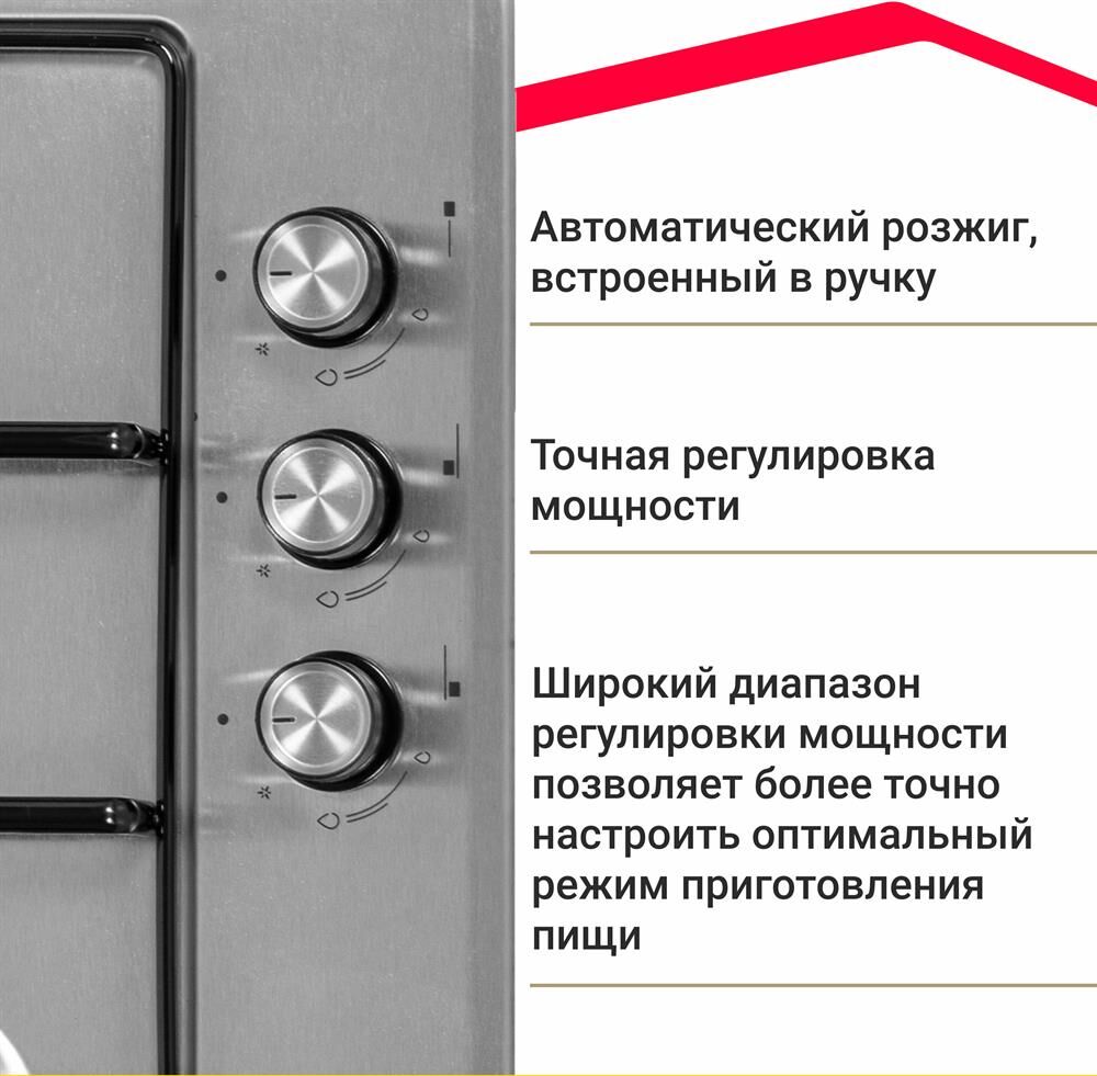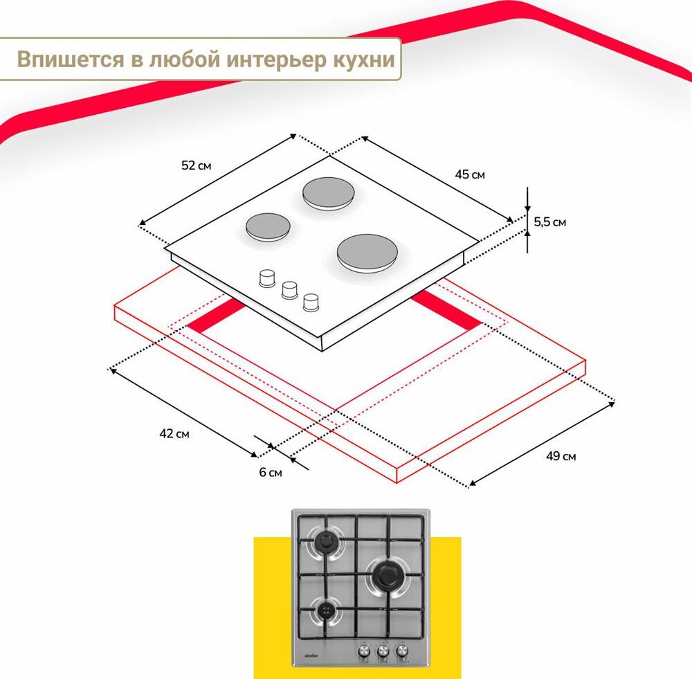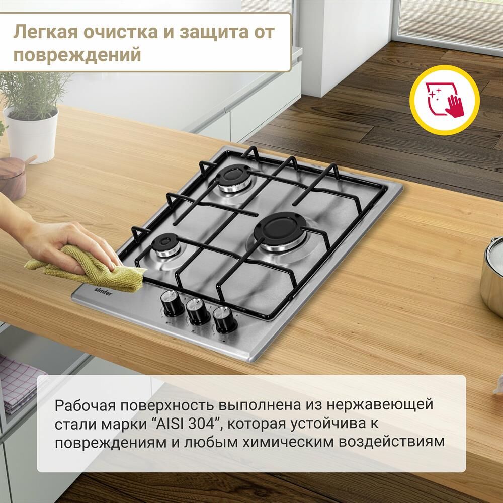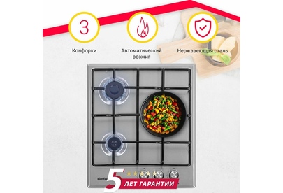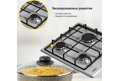Газовая варочная панель 45см Simfer H45V30M470 это стильное и функциональное решение для вашей кухни. Панель оснащена тремя конфорками различных размеров и мощностей, позволяя вам выбирать оптимальный режим приготовления для различных блюд. С помощью автоматического розжига вы сможете легко и безопасно зажечь плиту. Эмалированные решетки обеспечивают устойчивость посуды и удобное размещение кастрюль и сковород. • Независимая газовая варочная поверхность 45 см.