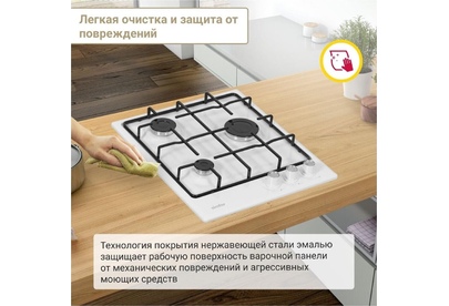 Газовая варочная панель Simfer H45V30W411 - модель, которая благодаря своим компактным размерам органично впишется в интерьер вашей кухни и сделает ежедневный процесс приготовления еды комфортным. Рабочая поверхность выполнена из нержавеющей стали – прочного и долговечного материала. На ней располагаются три конфорки - разные по диаметру и мощности пламени в них. А значит вы сможете выбрать оптимальную конфорку для приготовления разнообразных блюд.