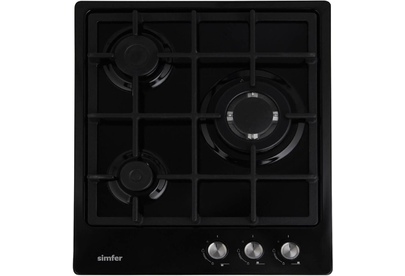 Simfer H45V35B555 – встраиваемая газовая панель шириной всего 44 см. Это удачное решение для малогабаритной кухни. Лаконичный дизайн сделает устройство органичным дополнением любого классического интерьера. продуманные детали В этой модели – три конфорки, расположенные так, что даже при использовании сразу всех посуда не будет соприкасаться бортами. В передней части находится самая маленькая, на которую удобно ставить турку или маленький ковшик, чтобы не тянуться через всё рабочее пространство.