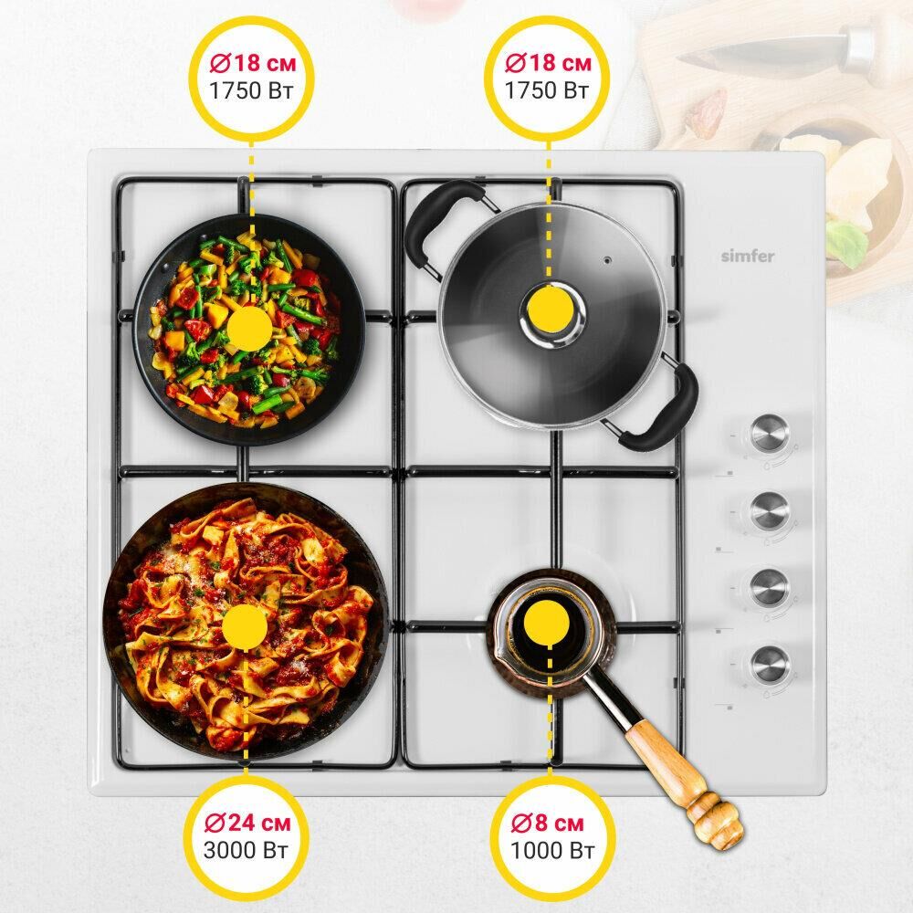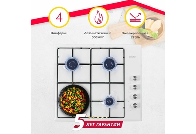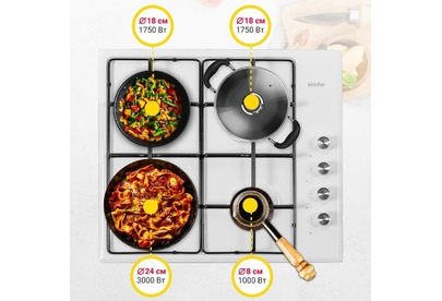 Газовая варочная панель Simfer H60Q40W400 - модель, которая благодаря своим компактным размерам органично впишется в интерьер вашей кухни и сделает ежедневный процесс приготовления еды комфортным. Рабочая поверхность выполнена из нержавеющей стали – прочного и долговечного материала. На ней располагаются четыре конфорки - разные по диаметру и мощности пламени в них. А значит вы сможете выбрать оптимальную конфорку для приготовления разнообразных блюд.