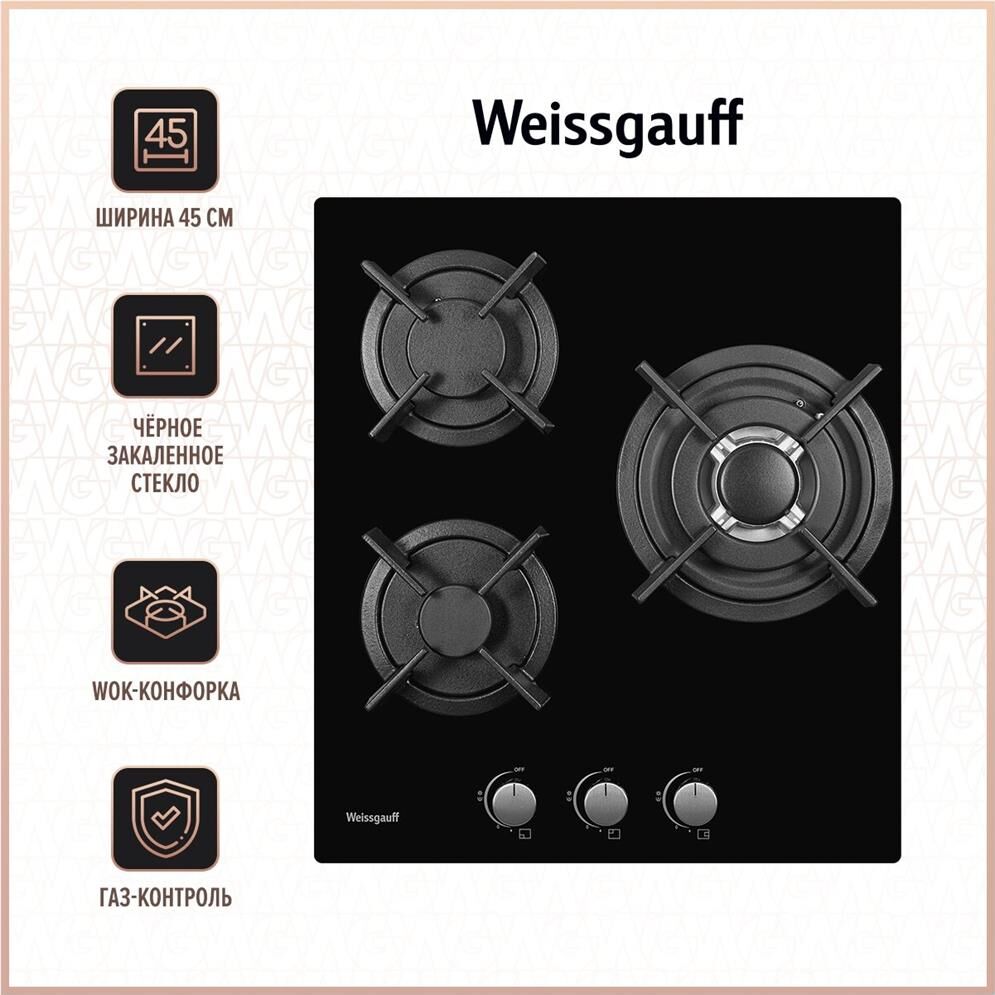 Газовая варочная панель WEISSGAUFF Газовая варочная поверхность HGG 451 BGH