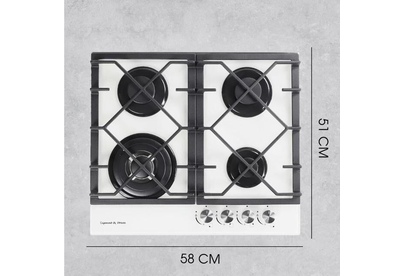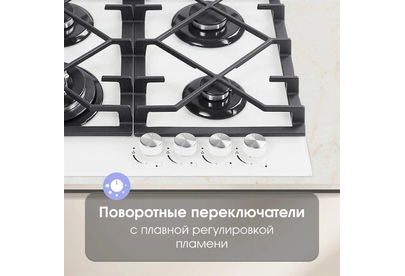 Тип панели газ на стекле Ширина, см 60 Цвет белый Количество конфорок 4 Управление фронтальное Переключатели поворотные Материал поверхности закаленное стекло Решетки чугунные Тройное кольцо пламени есть Мощность горелок, Вт 900; 1800; 1800; 3400 Газ-контроль есть Электроподжиг в каждой ручке Матовые колпачки горелок есть Переходники для разных типов газа есть Размеры, см 58,4х51 Размеры для встраивания (ВхШхГ), см 55,2х47 Гарантия 3+2 Страна производства Китай Линейка Style