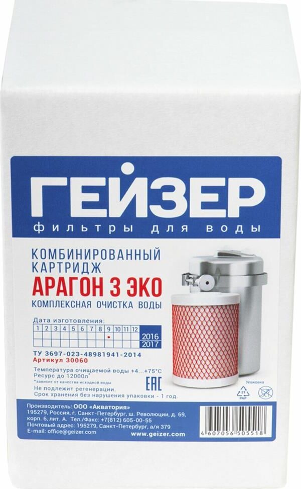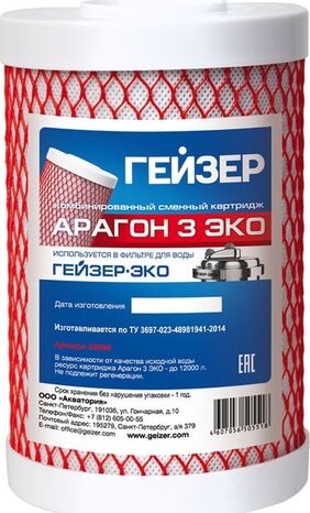 применяется в фильтре Гейзер ЭКО для комплексной очистки воды с низким и средним уровнем минерализации
