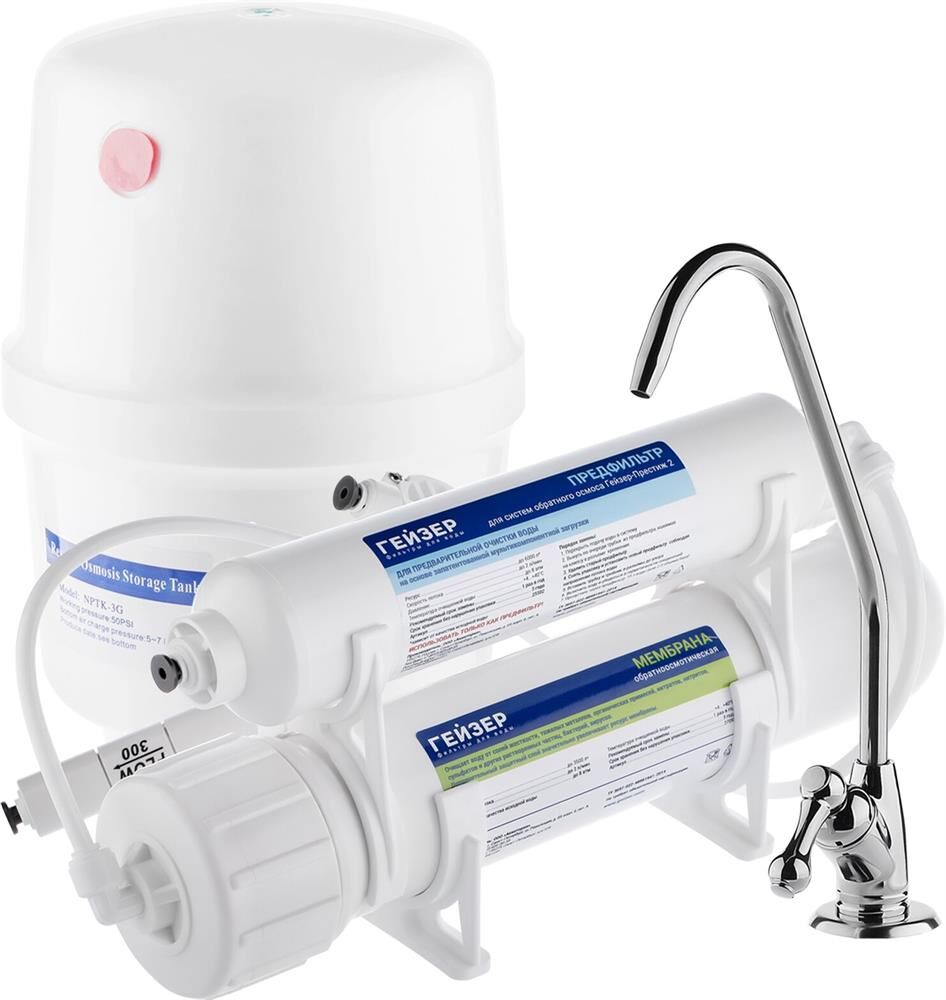 Размер Гейзер Престиж 2 в 5 раз меньше стандартных обратноосмотических систем.