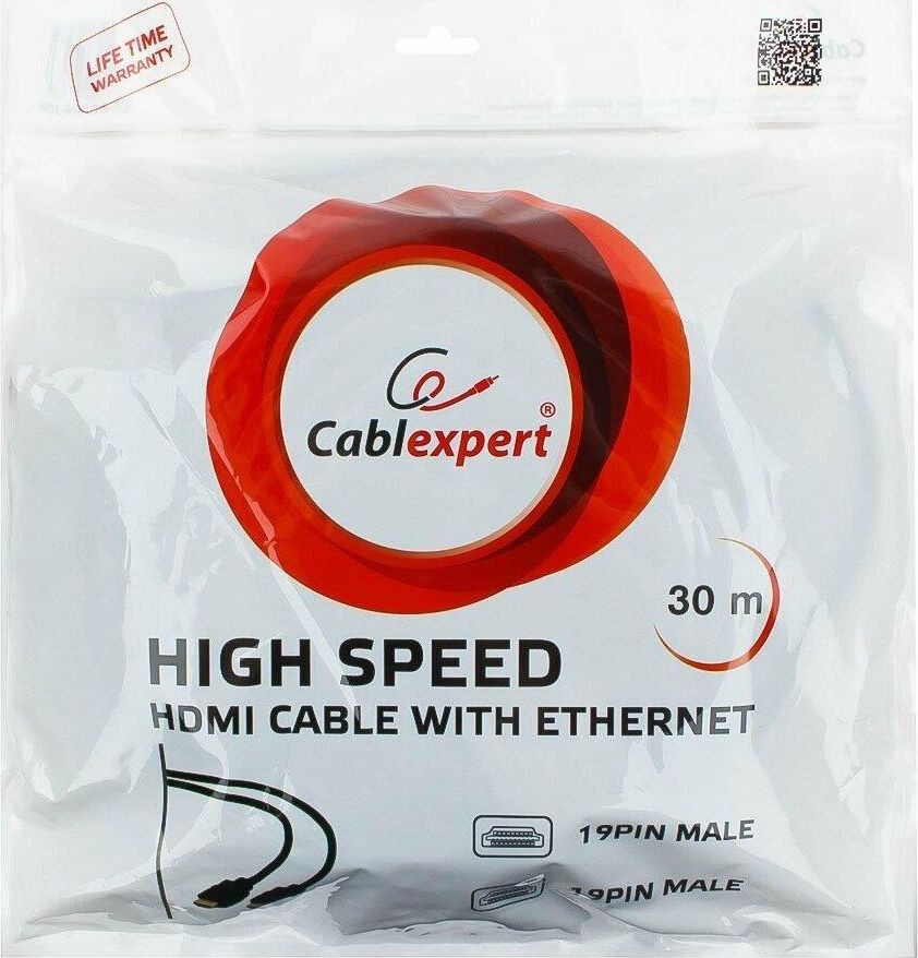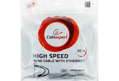 Кабель HDMI Cablexpert CC-HDMI4-20M, 20м, v1.4, 19M/19M, черный, позол.разъемы, экран, пакет Технические характеристики: Разъёмы: два 19-контактных HDMI [папа] Длина: 20 м Версия HDMI: 1.4 Отличие от v1.3: Добавлена поддержка разрешения 2K x 4K (3840 ? 2160 на 24/25/30Гц и 4096 ? 2160 на 24Гц) Добавлена возможность создания Fast Ethernet-соединения (100 Мбит/с) (HDMI Ethernet Channel, HEC) Добавлена технология реверсивного звукового канала (ARC)