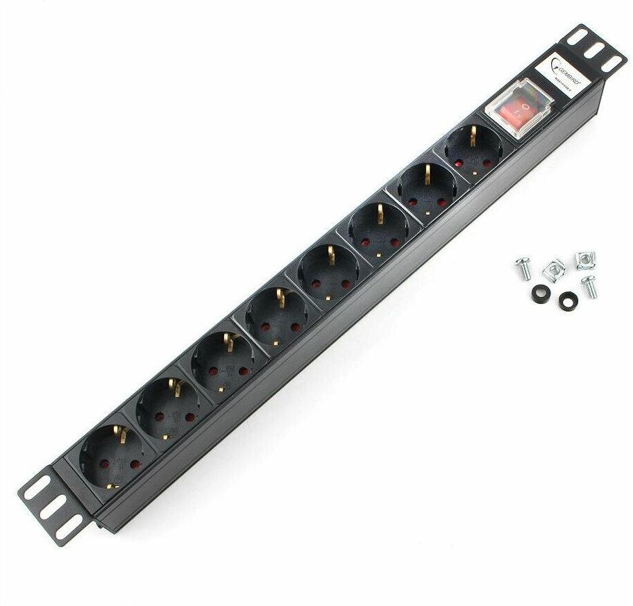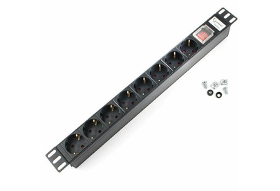 [Сетевые фильтры] Gembird [MAX19-EH8-0] Блок 8 евророзеток с защитой для 19". C14. MAX-19. 16A. 1U.