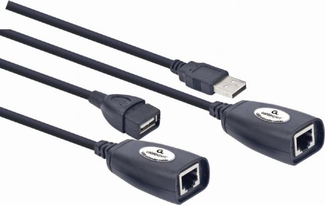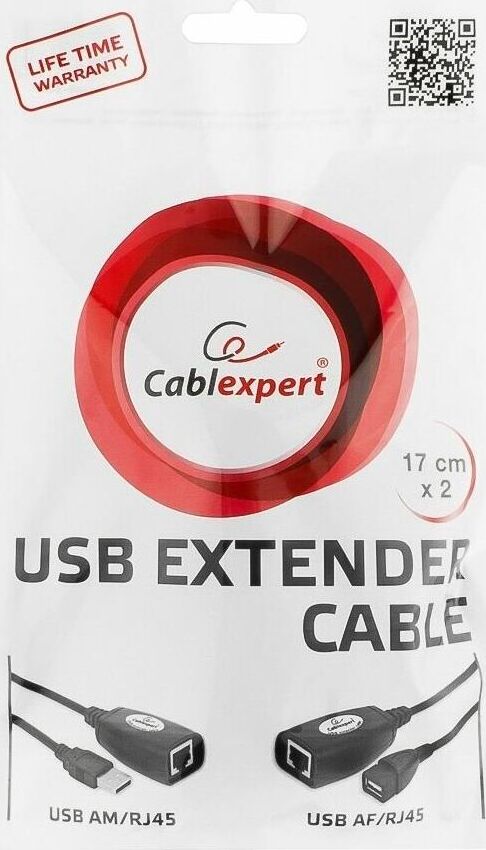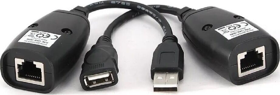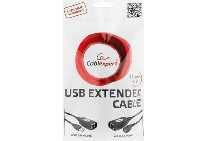 Удлинитель USB 2.0 по витой паре Cablexpert UAE-30M USB AM-AF/RJ45Fx2. Описание Позволяет удлинить рабочее расстояние USB порта до 30 метров. Работает с помощью сетевых кабелей категорий 6CAT или CAT5E. Не требуется драйверов для установки. Не требуется дополнительных источников питания. Технические характеристики USB 1.1 (совместим с USB 2.0) Позволяет удлиннить рабочее расстояние USB порта до 30 метров Работает с помощью сетевых кабелей категорий 5E или 6 Не требует драйверов Не требует дополнительного