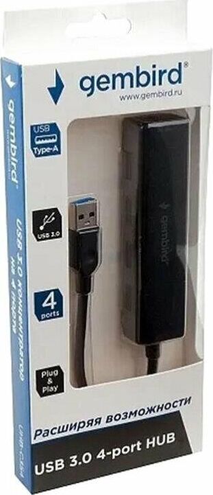 Производитель Gembird Модель UHB-C354 Тип оборудования USB-хаб Корпус Пластиковый Цвета, использованные в оформлении Длина кабеля Черный 15 см Описание 4-портовый USB-концентратор Комплект поставки и опции Комплект поставки Кабель USB 3.0 Параметры производительности Скорость передачи данных 5000 Мбит/сек Интерфейс, разъемы и выходы Порты Разъём для дополнительного внешнего питания 4 x USB 3.0 Type A 3.5 х1.35 мм (MAX DC 5 В / 3 А,15 Вт)