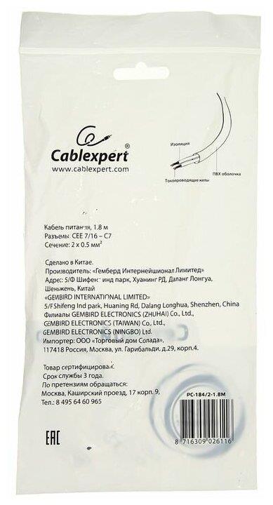 GEMBIRD/Cablexpert (00894) PC-184/2-1.8М, 1.8м, CEE 7/16 - C7, 2-pin, 2.5А, черный (5)