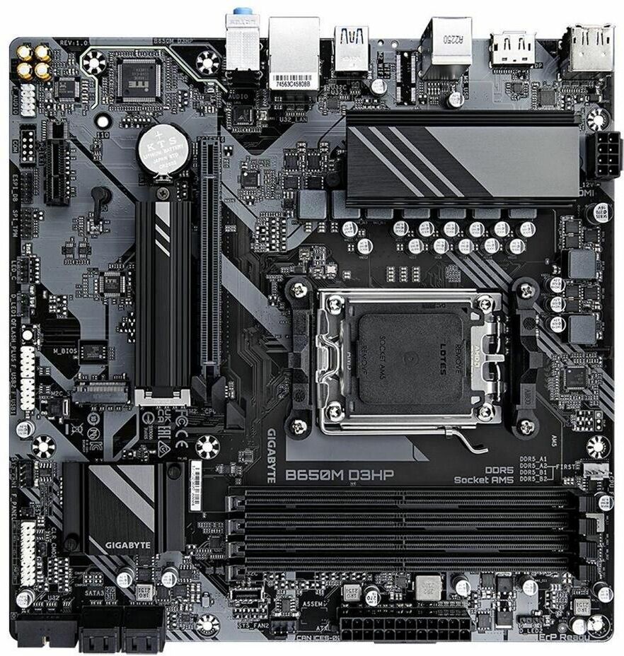 GIGABYTE Материнская плата B650M D3HP AX (AM5, mATX, B650, 4xDDR5, 1xPCI-Ex16, 2xM.2, DP+HDMI, RTL)