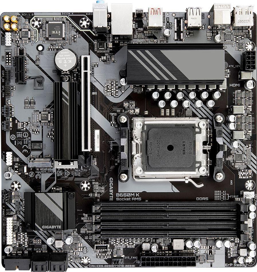 GIGABYTE Материнская плата B650M K Socket AM5 AMD B650 4xDDR5 mATX AC`97 8ch(7.1) 2.5Gg RAID+HDMI