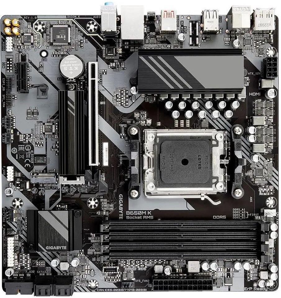 GIGABYTE Материнская плата B650M K Socket AM5 AMD B650 4xDDR5 mATX AC`97 8ch(7.1) 2.5Gg RAID+HDMI