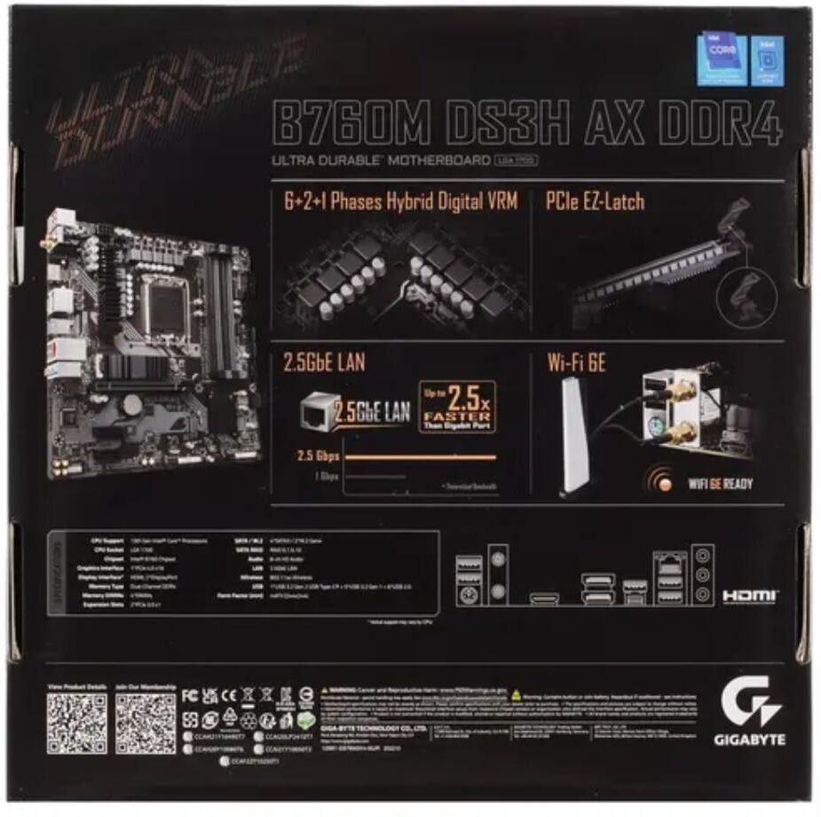 GIGABYTE Материнская плата B760 S1700 MATX B760M DS3H WF6E GEN5