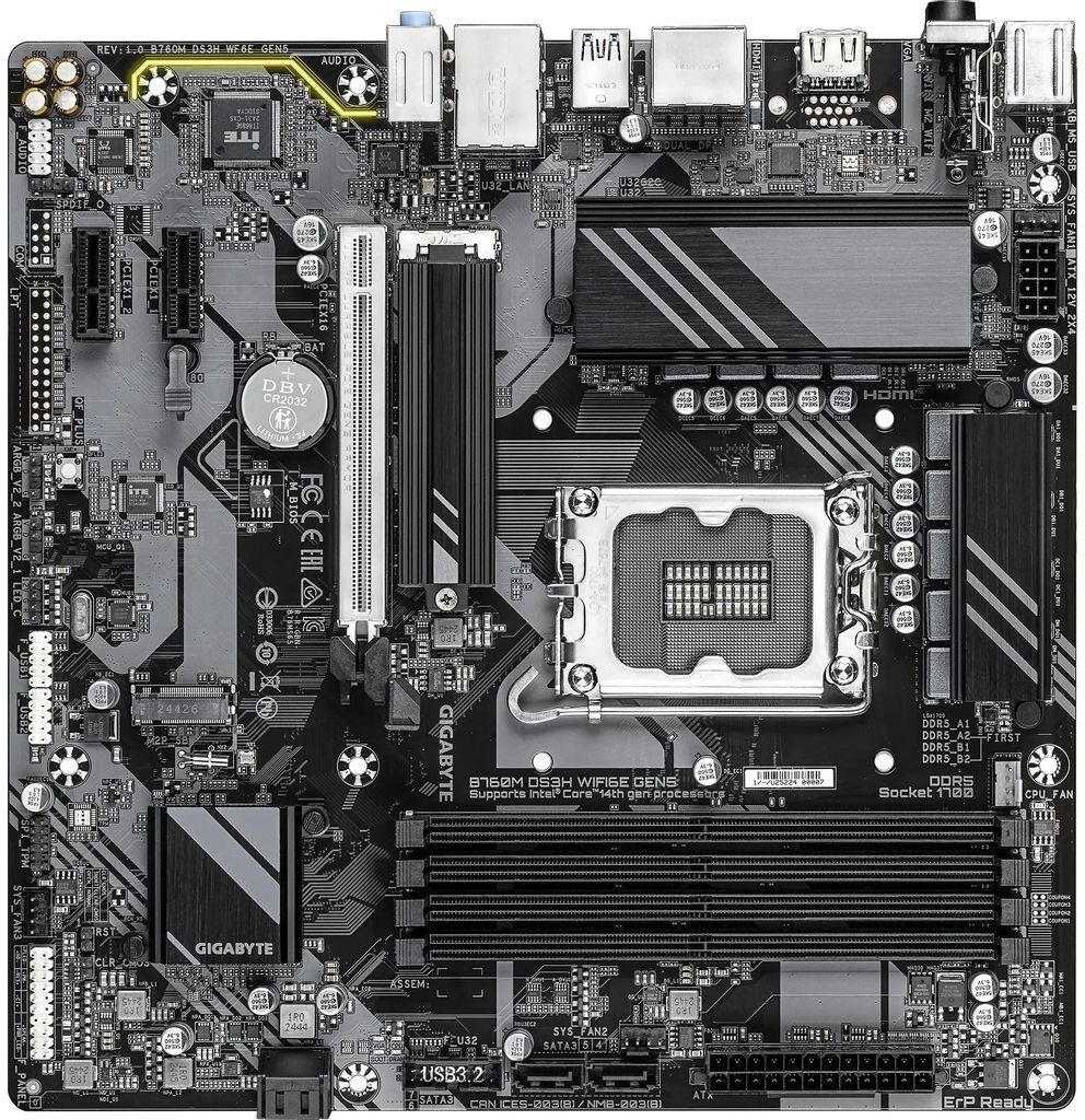 GIGABYTE Материнская плата B760M DS3H WIFI6E GEN5 Soc-1700 Intel B760 4xDDR5 mATX AC`97 8ch(7.1) 2.5