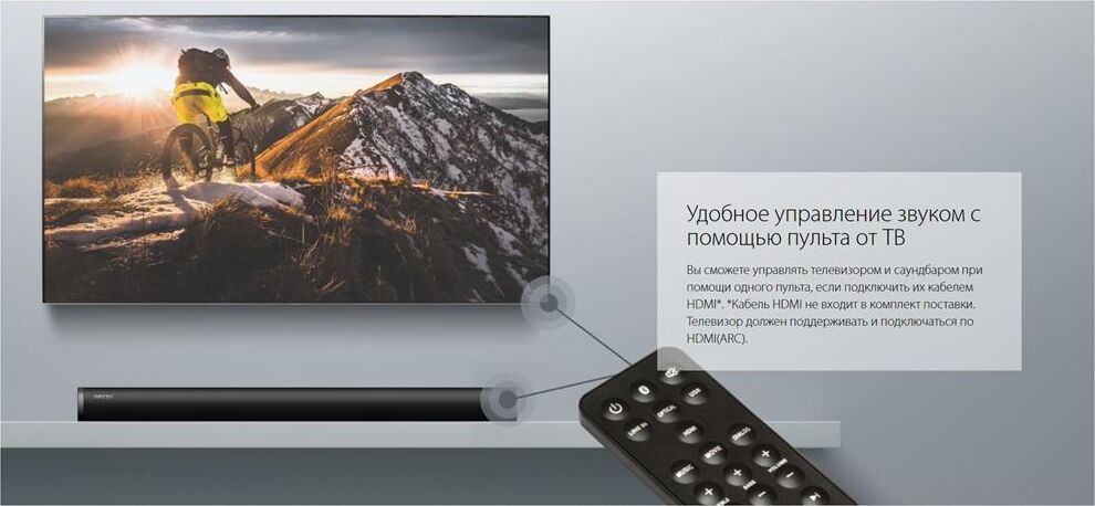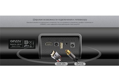 встроенный эквалайзер (Music, Movie, Dialog), режимы MUTE, STANDBY, вход – HDMI, Optical, Line in 3.5 мм, встроенный аудио-плеер – USB-flash, динамик – 2 х 10 Вт / 4 Ом, напряжение питания – 220-240В / 50 Гц