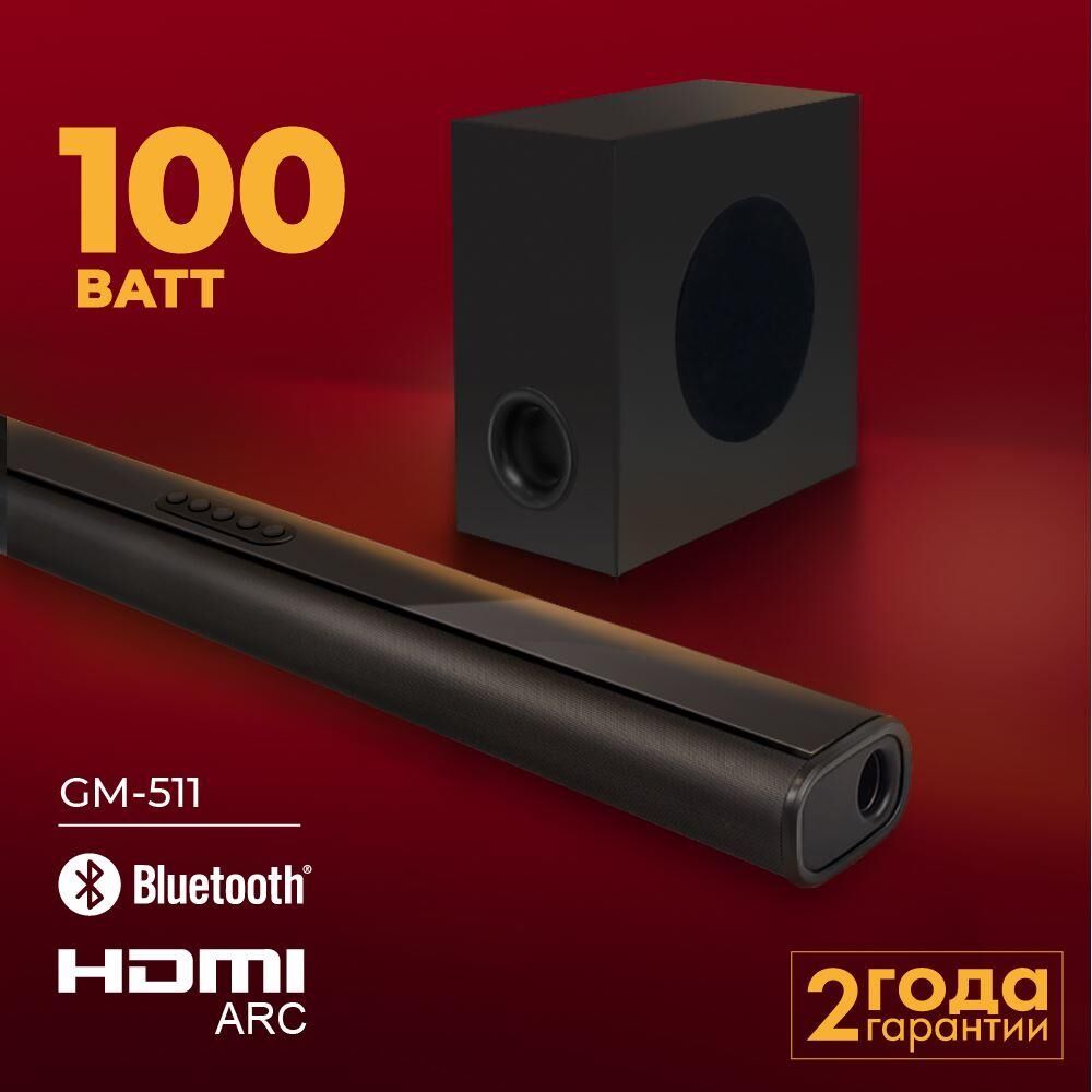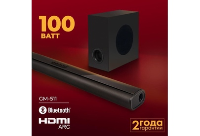 Саундбар с динамиками 4 х 2.25 дюйма / 8 Ом . Проводной сабвуфер с динамиком 5.25 дюйма / 4 Ом. Питание: адаптер GA-3058, DC-jack 18 В / 3,0 А. Вход HDMI ARC. Вход COAXIAL. Вход LINE IN 3,5 мм. Bluetooth: V5.0. Встроенный аудио-плеер: USB-flash. Диапазон воспроизводимых частот: 40 Гц - 20 КГц. Пульт дистанционного управления. Режимы MUTE, STANDBY. Эквалайзер:Normal/Pop/Rock/Jazz/Classical/Country. LED дисплей. Поддерживаемые форматы: MP3, WAV, WMMA, APE, FLAC.