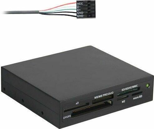 Внутренний картридер 3.5". Корпус из пластика. Поддержка формата SDXC. 6 слотов для флэш-карт памяти.