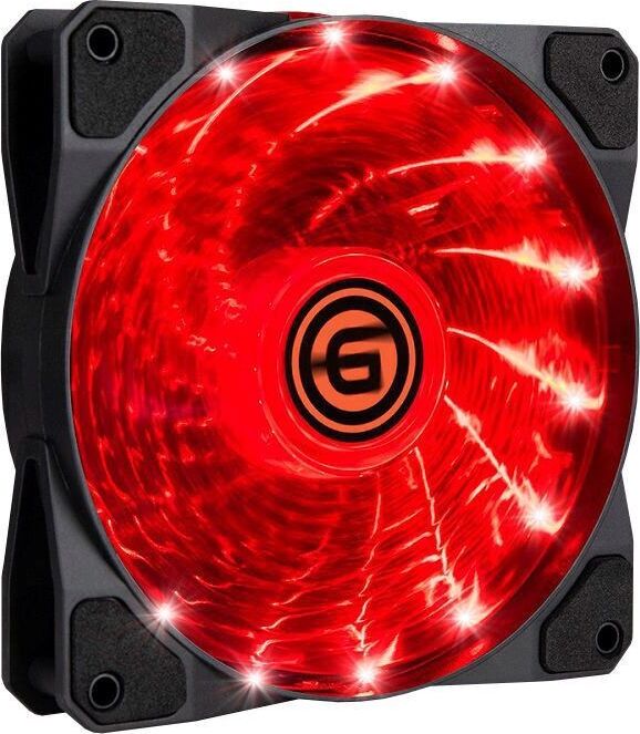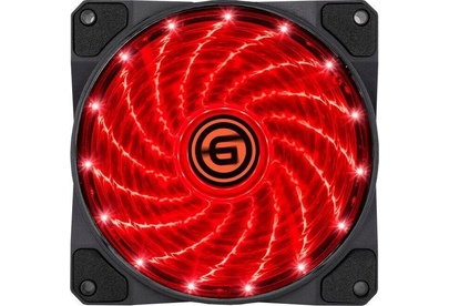 Вентилятор 12 см с LED подсветкой красного цвета. Количество светодиодов 15. Антивибрационные прокладки.