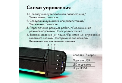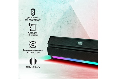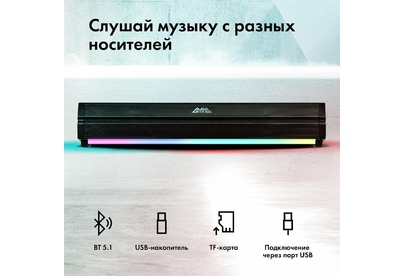 Тип акустической системыСаундбар НазначениеДля домашнего кинотеатра Количество полос2 Максимальная мощность акустической системы10 Вт Минимальная частота20 Гц Максимальная частота16000 Гц Чувствительность87 дБ Беспроводные интерфейсыBluetooth Материал корпусаМеталл, пластик Вес0.52 кг КомплектацияПодсветка