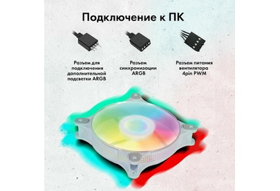 GMNG Вентилятор GG-CF120ARGB4-PWMWH 120мм, 4-pin, 2000об/мин, 11 - 26 дБ, ARGB, белый, Ret