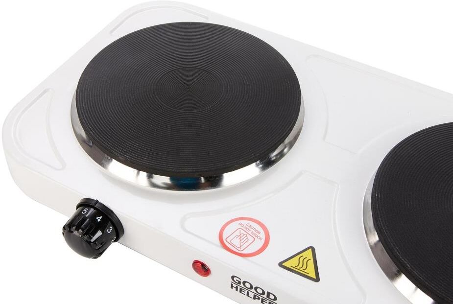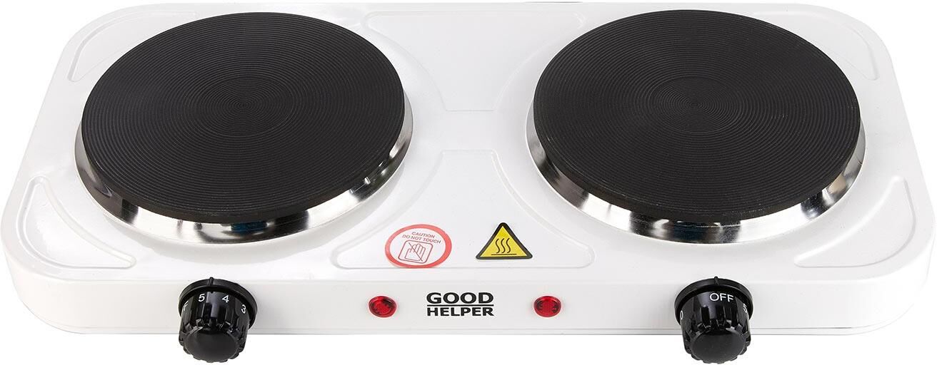 GOODHELPER электрическая ES-20P10 Goodhelper ES-20P10 — электроплитка с двумя конфорками диаметром 15,5 см и мощностью 1 кВт. Система управления — механическая, для каждой зоны нагрева — свой поворотный регулятор. Есть функция отключения при перегреве. Корпус делан из нержавеющей стали, на варочной поверхности — покрытие из эмали. Есть прорезиненные нескользящие ножки. Для подключения к розетке предусмотрен сетевой шнур 0,8 м. Размеры устройства — 7 х 43 х 21 см, вес — 2,25 кг.