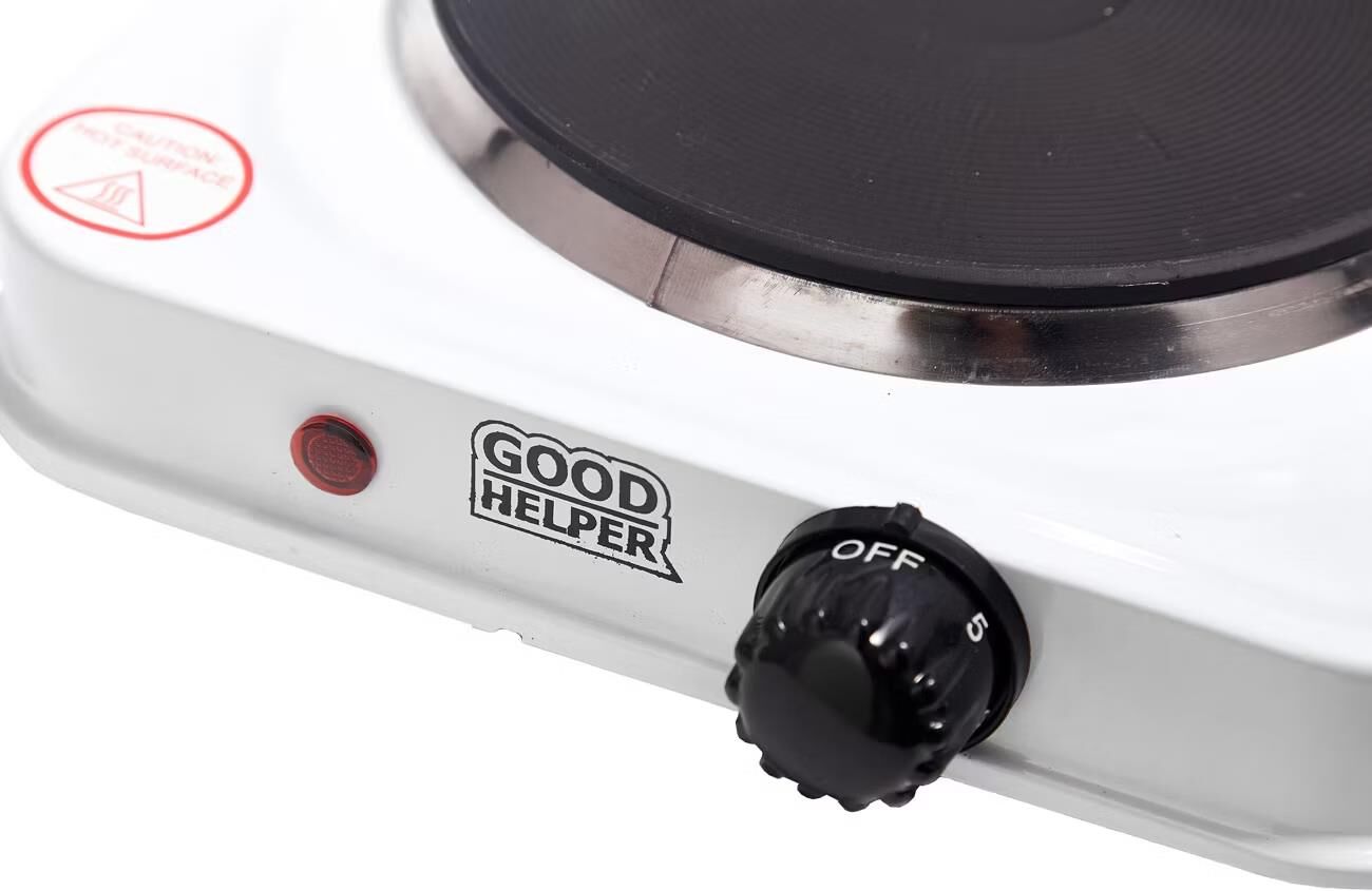 Удобная 5-ступенчатая плавная регулировка мощности, Конфорка 155 мм с антипригарным покрытием, Корпус изготовлен из прочной стали с покрытием из эмали, устойчивой к высоким температурам. Индикатор работы, Мощность-1000Вт.