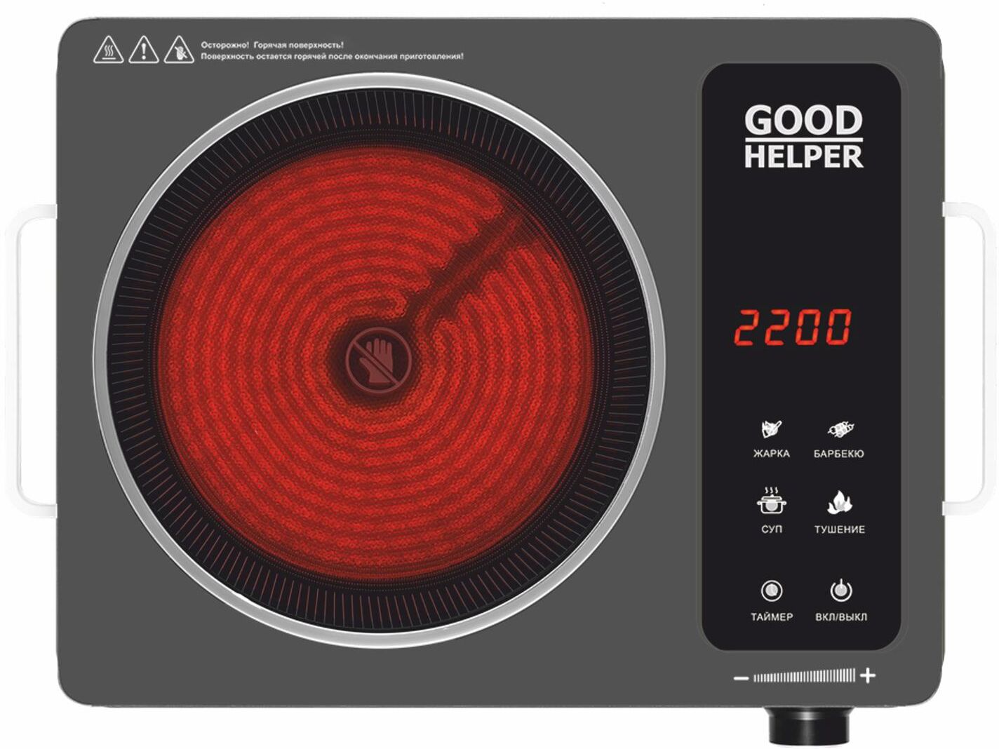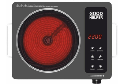 Инфракрасная плитка. Стеклокерамическая поверхность, 5 режимов мощности, Таймер, Защита от перегрева, Индикатор остаточного нагрева, Мощность 2000Вт.