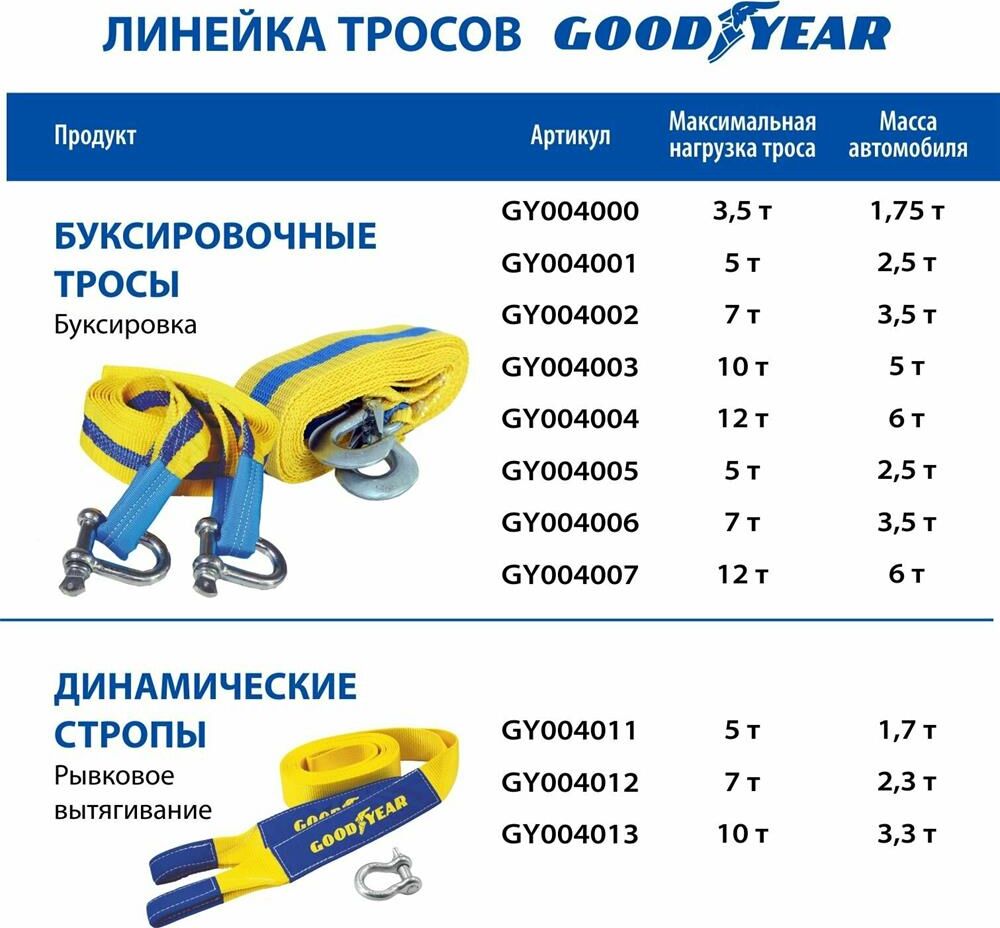 GOODYEAR GY004003 10 тонн Трос буксировочный
