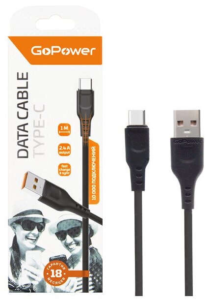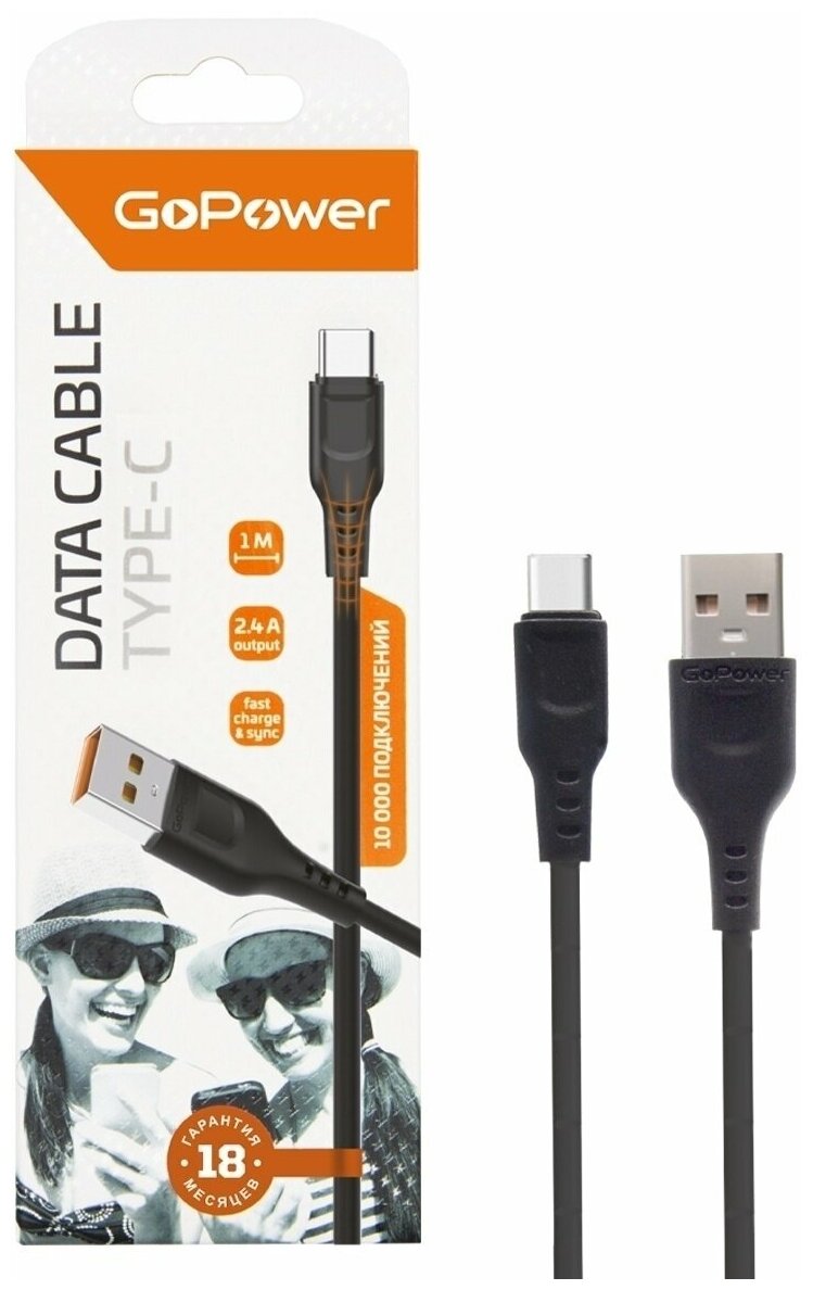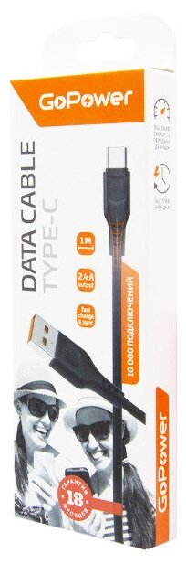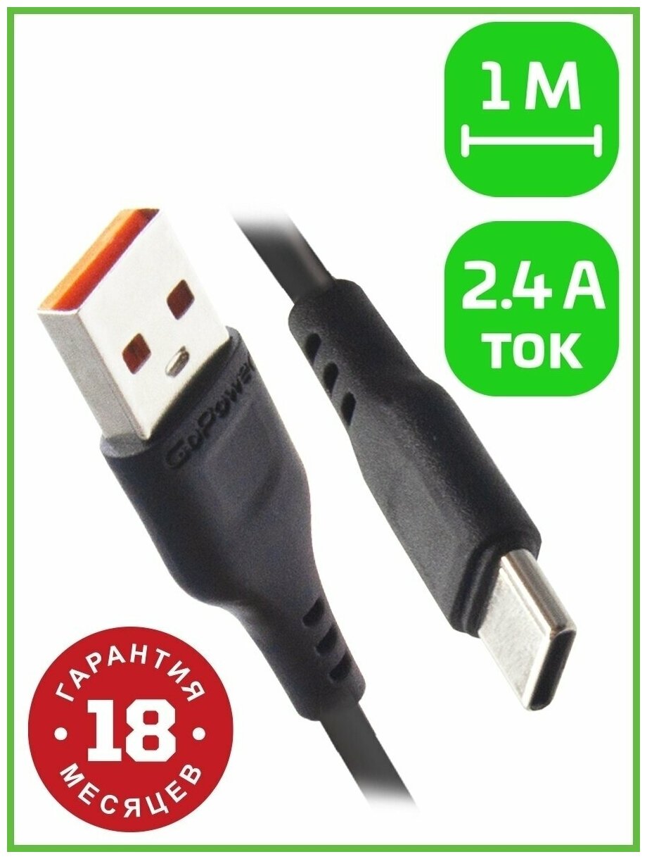 GOPOWER (00-00018566) Кабель GP01T USB (m)-Type-C (m) 1.0м 2.4A черный