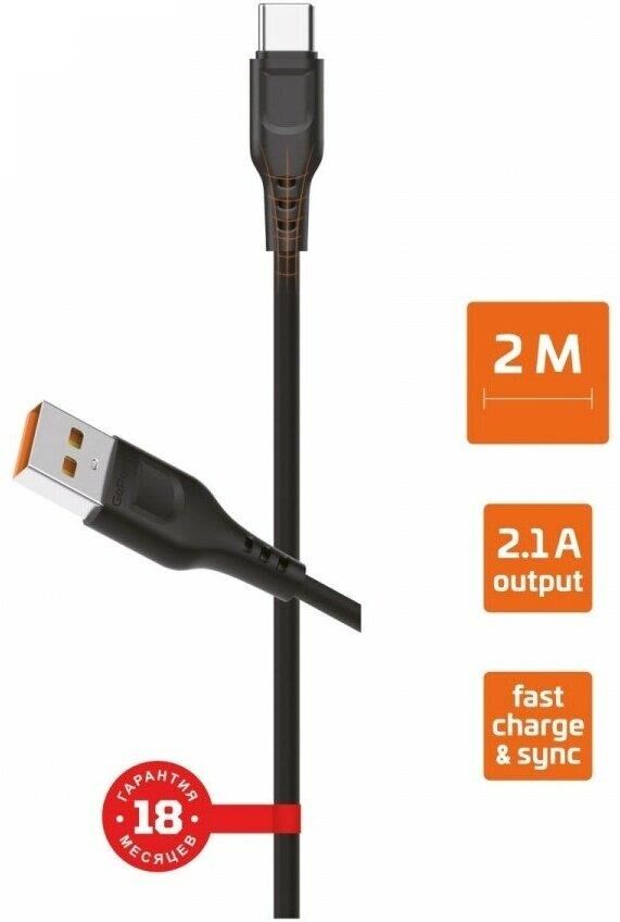 GOPOWER (00-00018566) Кабель GP01T USB (m)-Type-C (m) 1.0м 2.4A черный