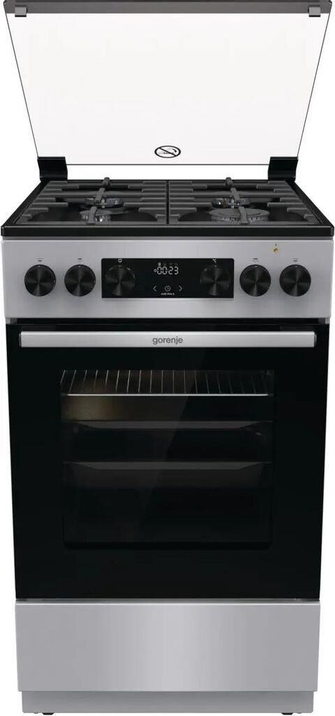 GORENJE Газовая плита GK5C41SF, электрическая духовка, стеклянная крышка, чугун, серый