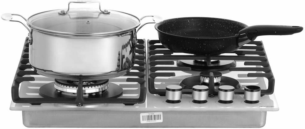 Тип панели: газовая. Установка рабочей поверхности: независимая. Материал поверхности: закаленное стекло. Материал решетки: чугун. Заводская настройка на газ: 20. Суммарная мощность газовых конфорок: 8.15. Цвет: белый. Конфорка ВОК: есть. Вес (нетто): 15. Газ-контроль: есть. Габариты упаковки (ед) ДхШхВ: 0.68x0.59x0.15. Вес упаковки (ед): 15.7. Настроенный вид газа: природный (метан). Общее количество конфорок: 4. Расположение панели управления: спереди/сбоку. Управление: механическое. Электроподжиг: в ручке (автоматический). Гарантия: 12 мес.. Левая ближняя конфорка: газовая, мощность 3.5 кВт, размер 123 мм, двухконтурная. Левая дальняя конфорка: газовая, мощность 1.8 кВт, размер 73.5 мм, одноконтурная. Размеры (ШхГхВ): 600х520х136 мм. Размеры ниши для встраивания (ШхГхВ): 560х490х100 мм. Правая ближняя конфорка: газовая, мощность 1.05 кВт, размер 53.7 мм, одноконтурная. Правая дальняя конфорка: газовая, мощность 1.8 кВт, размер 73.5 мм, одноконтурная. Тип переключателей: поворотные. Особенности: электроподж