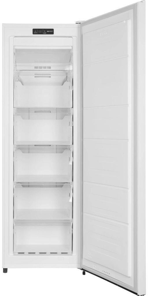 Класс энергопотребления: A+. Тип управления: электронное. Система размораживания: No Frost. Общий объем морозильной камеры: 212. Уровень шума: 43. Количество ящиков: 5. Мощность замораживания: 15. Хранение при отключении питания: 11. Перевешиваемые двери: есть. Потребление энергии: 262. Дисплей: есть. Количество компрессоров: 1. Хладагент: R600a. Полезный объем морозильной камеры: 186. Количество полок: 1. Регулируемые по высоте ножки: есть. Вес (нетто): 48. Расположение дисплея: внутренний. Габариты упаковки (ед) ДхШхВ: 0.551x0.556x1.67. Вес упаковки (ед): 52. Количество дверей: 1. Количество камер: однокамерный. Материал дверей: металл. Материал полок: пластик. Технология автоматического размораживания морозильной камеры: No Frost. Максимальная температура: -14. Минимальная температура: -24. Гарантия: 12 мес.. Размеры (ШхВхГ): 55 х 169.1 х 55.7 см. Цвет: белый. Климатический класс: N, ST, T. Функции: суперзаморозка. Индикация: открытой двери, температуры. Класс энергопотребления: A+. Хранение при отключении