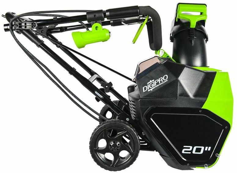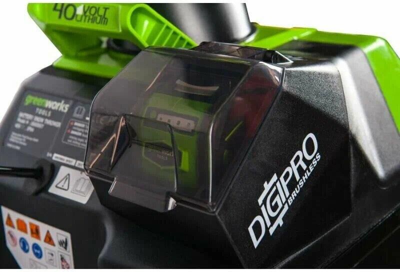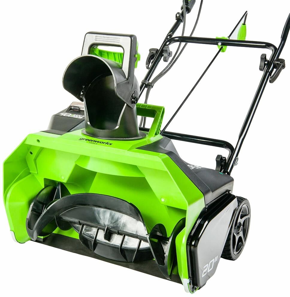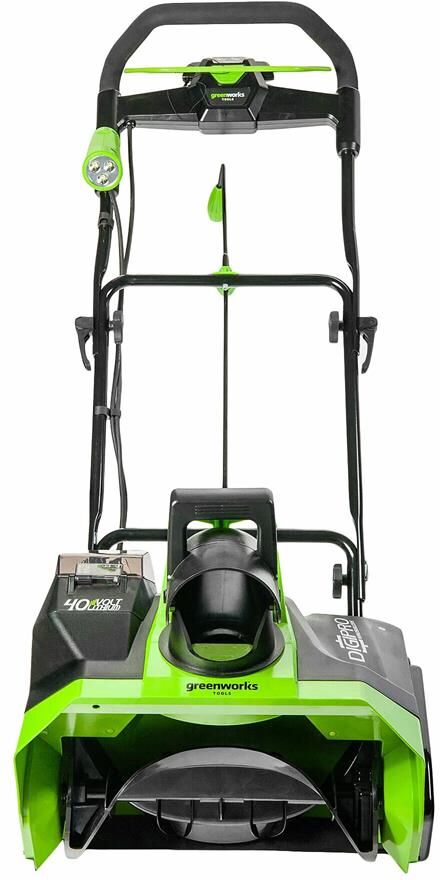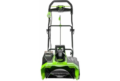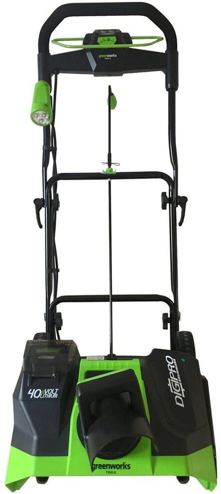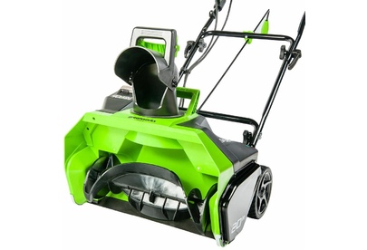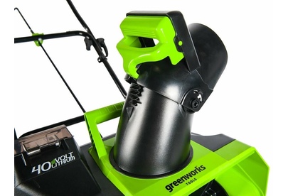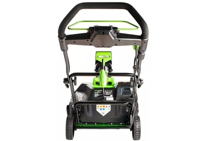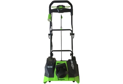 ХарактеристикиПроизводительGREENWORKSМодель2600007Тип оборудованияСнегоуборщикТип передвиженияКолесныйВысота ковша, см25Ширина ковша, см50,8Шнекармированный пластикСистема шнековОдноступенчатаяMax дальность выброса, м5,5Тип двигателяЭлектрический КомплектацияСнегоуборщик СтартерРучной/электрическийЭлектростартер с питанием от бортового аккумулятораЕстьУгол поворота желоба для выброса снега, град190Размер шин, см17СамоходныйНетРазблокировка колесНетНаличие фарыЕстьГабариты, мм1135х940х525Вес, кг15,2ширина(см)