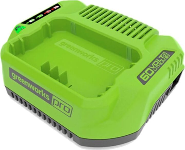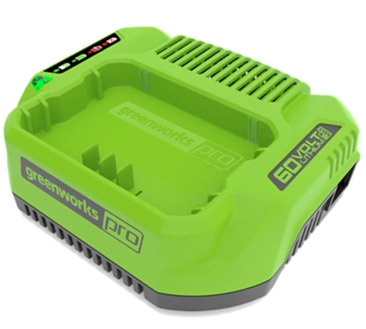 Зарядное устройство Greenworks (модель ) - используется для заряда аккумуляторных батарей Гринворкс 60 вольт на 2 А/ч, 4 А/ч и 6 А/ч. Время зарядки данных аккумуляторов составляет: 2 А/ч = 60 минут; 4 А/ч = 120 минут. Зарядка оснащается системой автоматического отключения при достижении максимального заряда батареи для сохранения рабочих характеристик Li-Ion, а также специальным чипом, который защищает батарею от перегрева. Эти современные системы интеллектуального заряда обеспечивают сохранность дорогостоящего лития от преждевременной потери своих свойств и обеспечивают максимально возможный срок службы батареи. Для устойчивости зарядка имеет прорезиненные ножки. Для крепления на стену есть специальная проушина. На корпусе зарядки присутствую индикаторы заряда. Питание зарядного устройства осуществляется от сети 230 вольт переменного тока 50-60 Гц, 1,9 Ампер. Преимущества модели: Совместимость с аккумуляторами Greenworks 60V; Чип для защиты от перегрева и перезаряда; Индикатор заряда; Прорезиненные ножки.