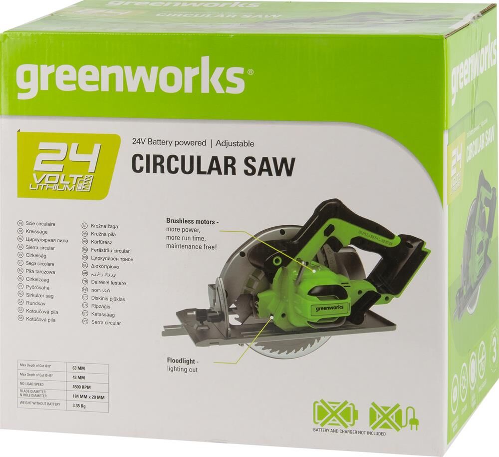 GREENWORKS Циркулярная пила (дисковая) GD24CS (ручная) D диска.:185мм (1500907)