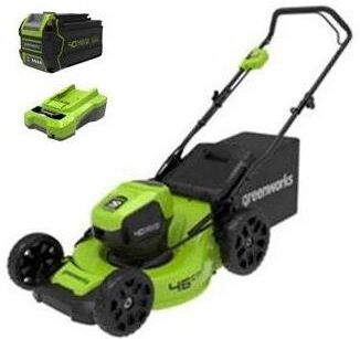 GREENWORKS Газонокосилка аккумуляторная GD40LM46HP, 46см, несамоходная, 4Ач, с ЗУ [2514407ub]