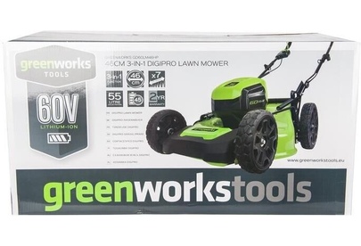 GREENWORKS Газонокосилка аккумуляторная GD60LM46HP, 46см, несамоходная, без АКБ, без ЗУ [2502807]