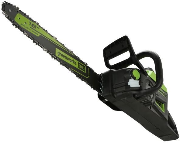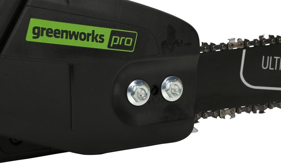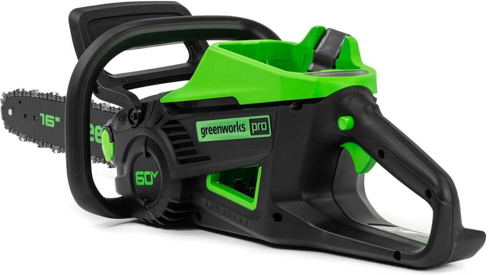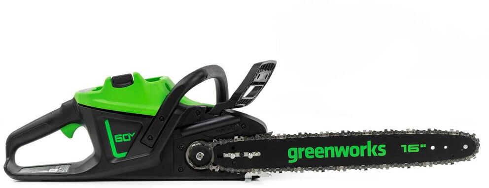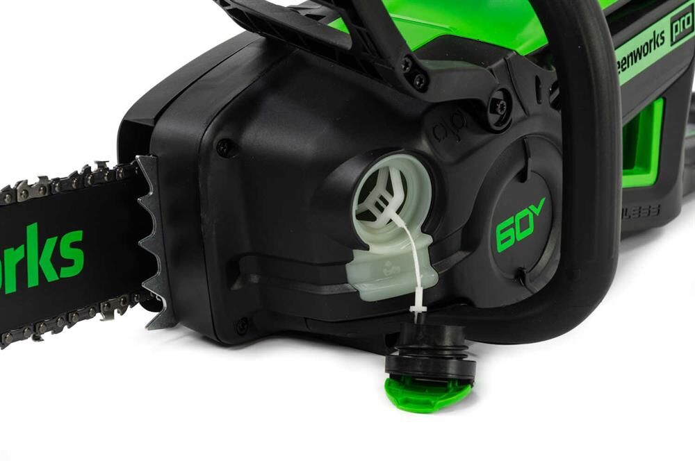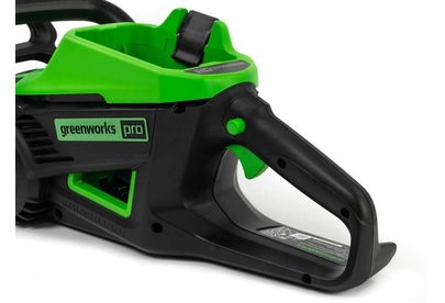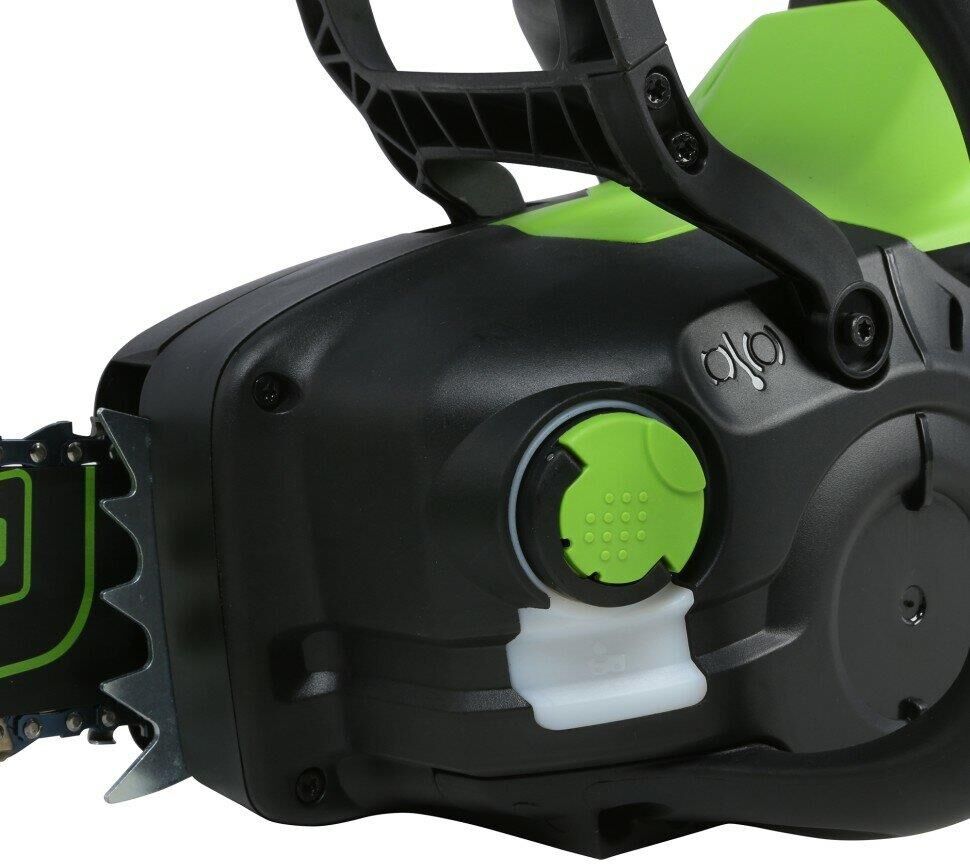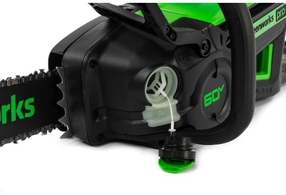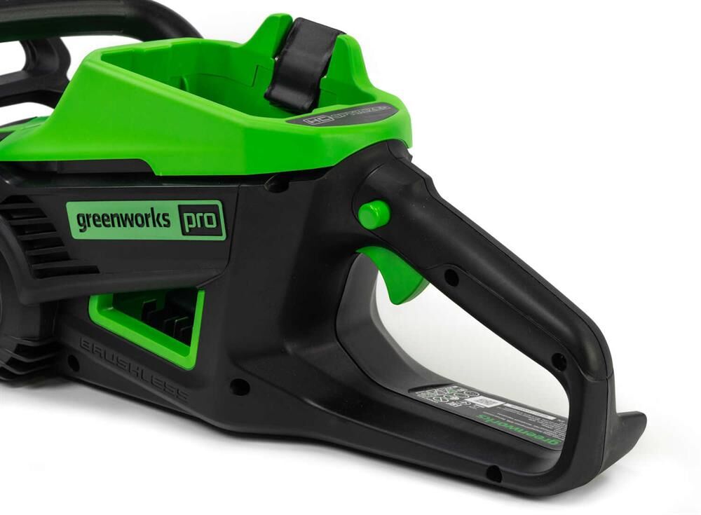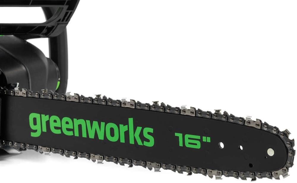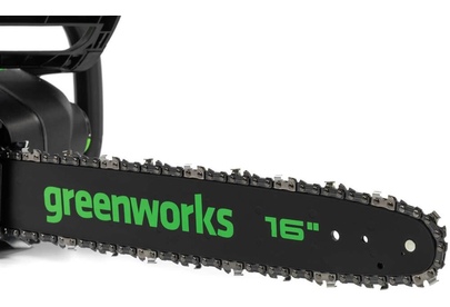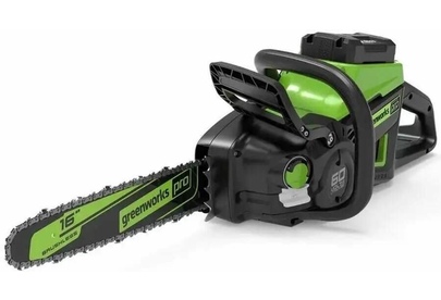 Цепная пила аккумуляторная Greenworks Арт. 2008907, 60V, 40 см, бесщеточная, 2500 Вт, без АКБ и ЗУ из мощной полупрофессиональной линейки 60V. Равнозначная замена бензинового инструмента. Предназначена для распиловки бревна, бруса, валки деревьев. Бесщеточный электрический двигатель DigiPro не уступает в мощности бензиновому до 3,4 л. с. В двигателе применена конструкция с внешним ротором. Такой двигатель обеспечивает существенно больший крутящий момент, чем распространенный двигатель с внутренним ротором.