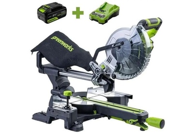 GREENWORKS Торцовочная пила GD24MS216, аккамуляторная, комбинированная, с 1 АКБ, с З/У, 216мм [15017