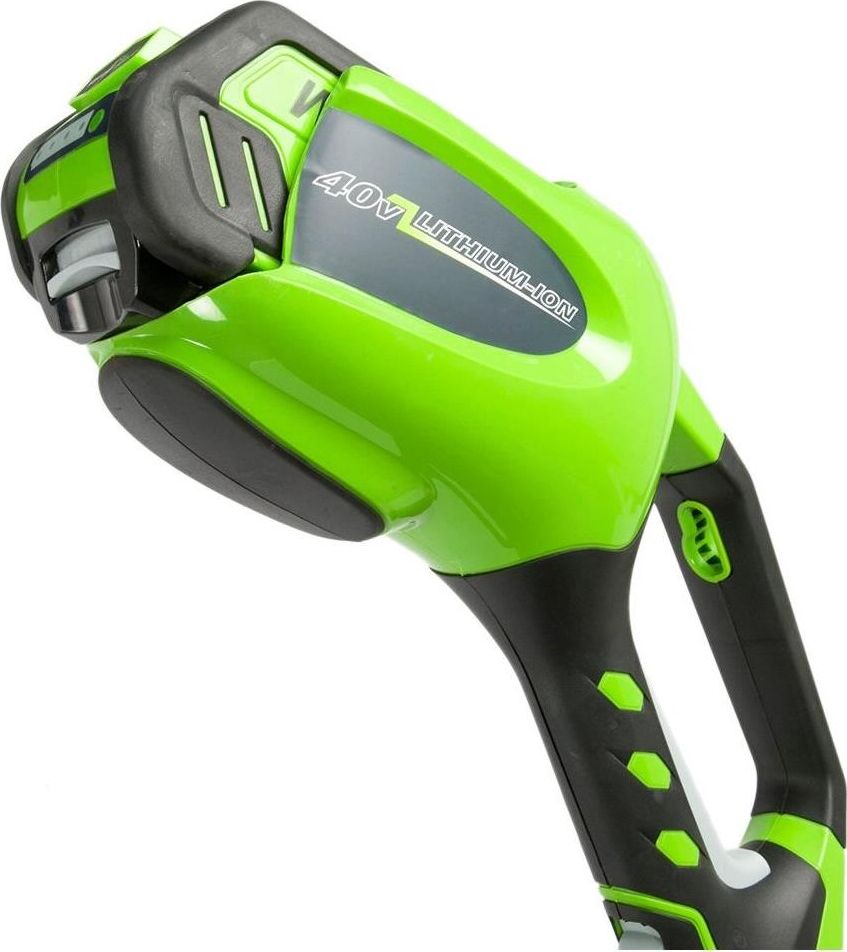 Тип двигателя: электрический. Расположение двигателя: верхнее. Форма штанги: прямая. Тип электропитания: от аккумулятора. Емкость аккумулятора: 4. Напряжение аккумулятора: 40. Тип аккумулятора: Li-Ion. Продолжительность работы от аккумулятора: 40. Время зарядки аккумулятора, около: 120. Режущий элемент: леска и нож. Диаметр круга стрижки: 35. Диаметр используемой лески: 2. Размер используемого ножа: 350. Тип крепления триммера: плечевой ремень. Вес товара: 5.8. Комплект поставки: G-MAX 40V аккумуляторный триммер 35 см; Аккумуляторная батарея 40V G-MAX на 4 А/ч; Зарядное устройство на 40V; Пильный диск; Руководство по эксплуатации; Гарантийный талон.. Особенности: Триммер аккумуляторный Greenworks 40 вольт (модель GD40BCK4) - отличная замена электро или бензиновому триммеру, он с легкостью справиться с высокой травой, а благодаря пильному диску (в комплекте) можно резать крупный кустарник.. Материал ножа: металл. Тип косильной катушки: полуавтоматическая. Форма рукоятки: D-образная. Тип штанги: разборная штанг