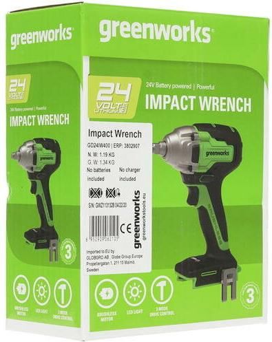 GREENWORKS Ударный гайковерт 3802907, без АКБ, без ЗУ
