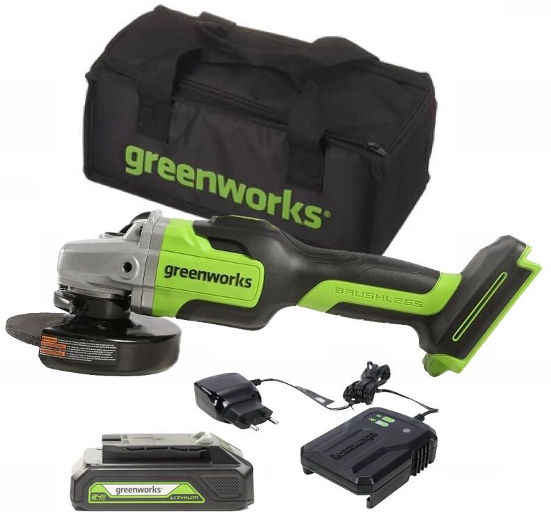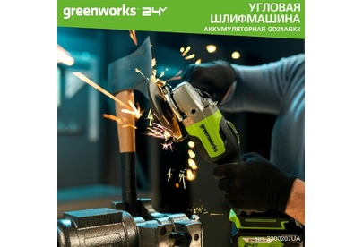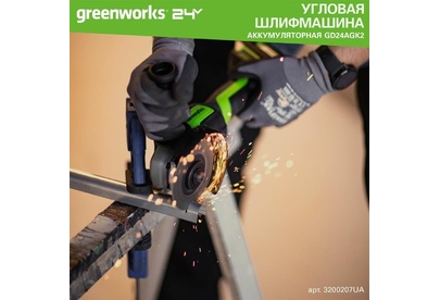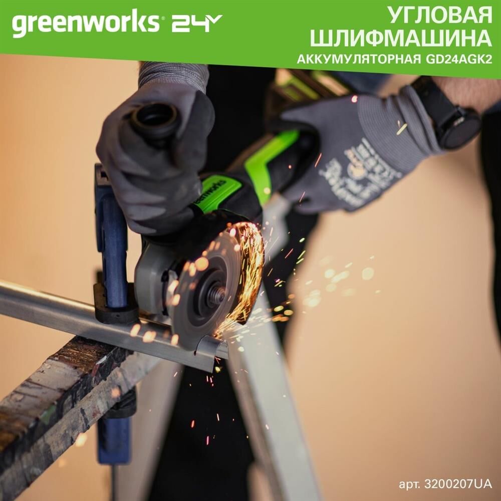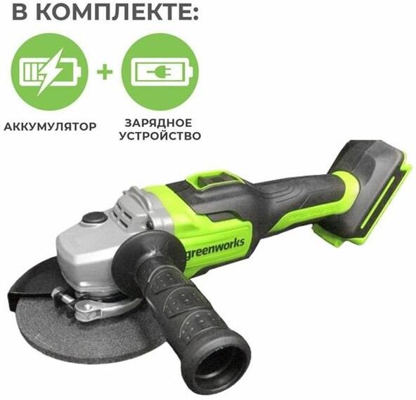 GREENWORKS Углошлифовальная машина GD24AG 10500об/мин рез.шпин.:M14 d=125мм (3200207UA)