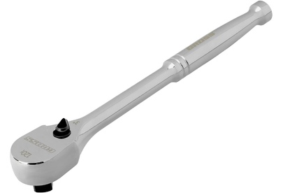 Цельнометаллический ключ-трещотка Gross 14052 с присоединительным квадратом 1/2" оснащен храповым механизмом со 120 зубьями. Предназначен для установки торцевых головок, а также адаптеров и удлинителей с посадочным отверстием соответствующего размера. Шаг храпового механизма составляет 3°, поэтому инструмент оптимален для использования в труднодоступных местах. Будет полезен в сервисном центре, на СТО, а также пригодится дома или в поездке. Преимущества Прочность и износостойкость — инструмент изготовлен из закаленной хромованадиевой стали твердостью 50-55 HRC. Защита от разрушения — на поверхность ключа нанесено антикоррозионное хромовое покрытие. Удобная работа — храповой механизм обеспечивает плавное вращение. Мгновенное переключение между задачами — направление вращения меняется одним движением при помощи металлического переключателя. Надежная фиксация — шариковый фиксатор крепко удерживает насадку. Эргономичность — цельнометаллическая рукоятка обеспечивает комфортную и безопасную работу.