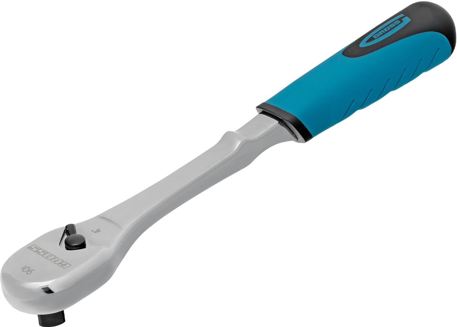 GROSS Ключ-трещотка 1/2", CrV, 90 зубьев, усиленный, хром 14055